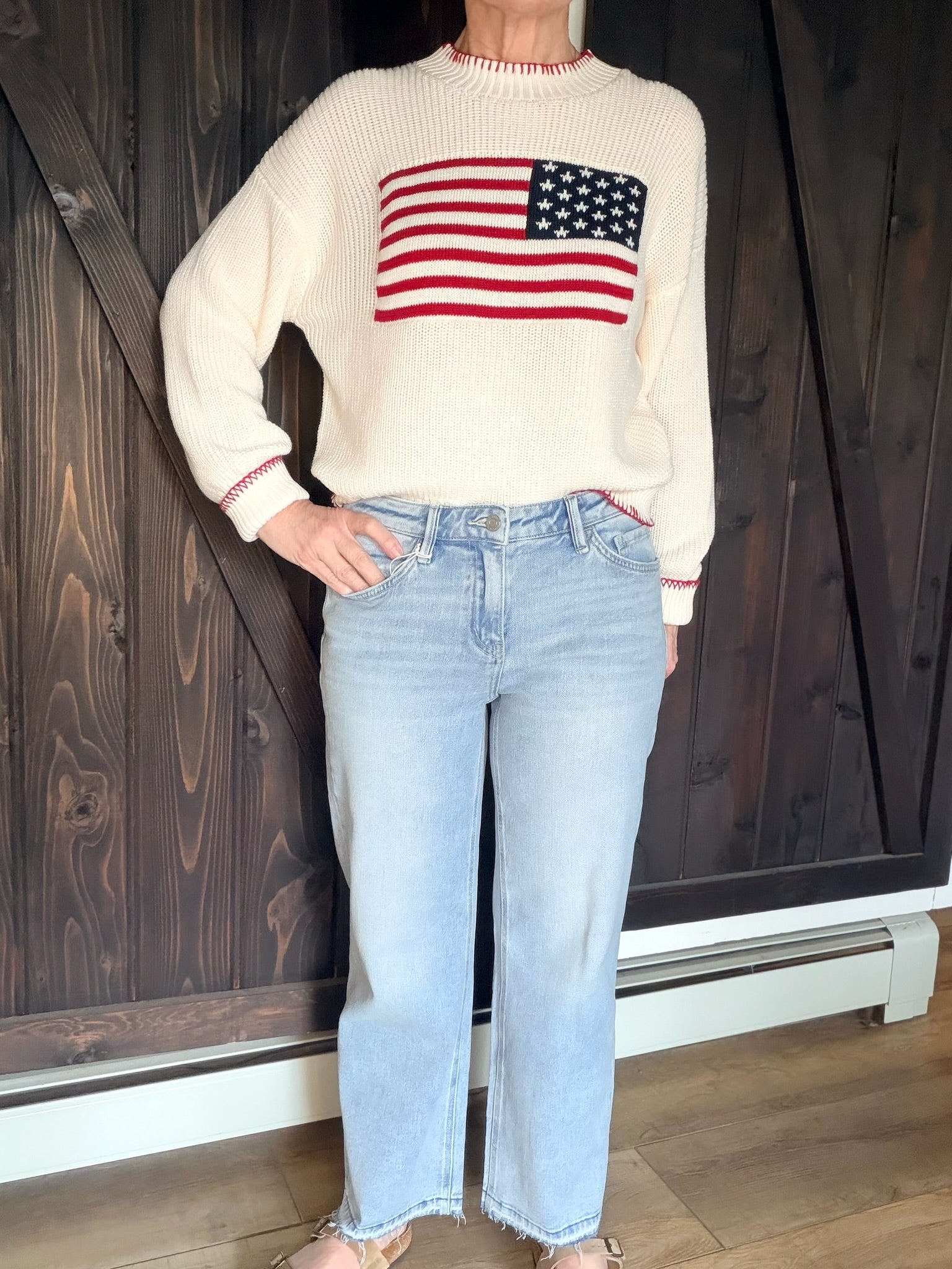 • Features: Mid-rise, classic 5-pocket design, crop, slim wide leg with undone hem