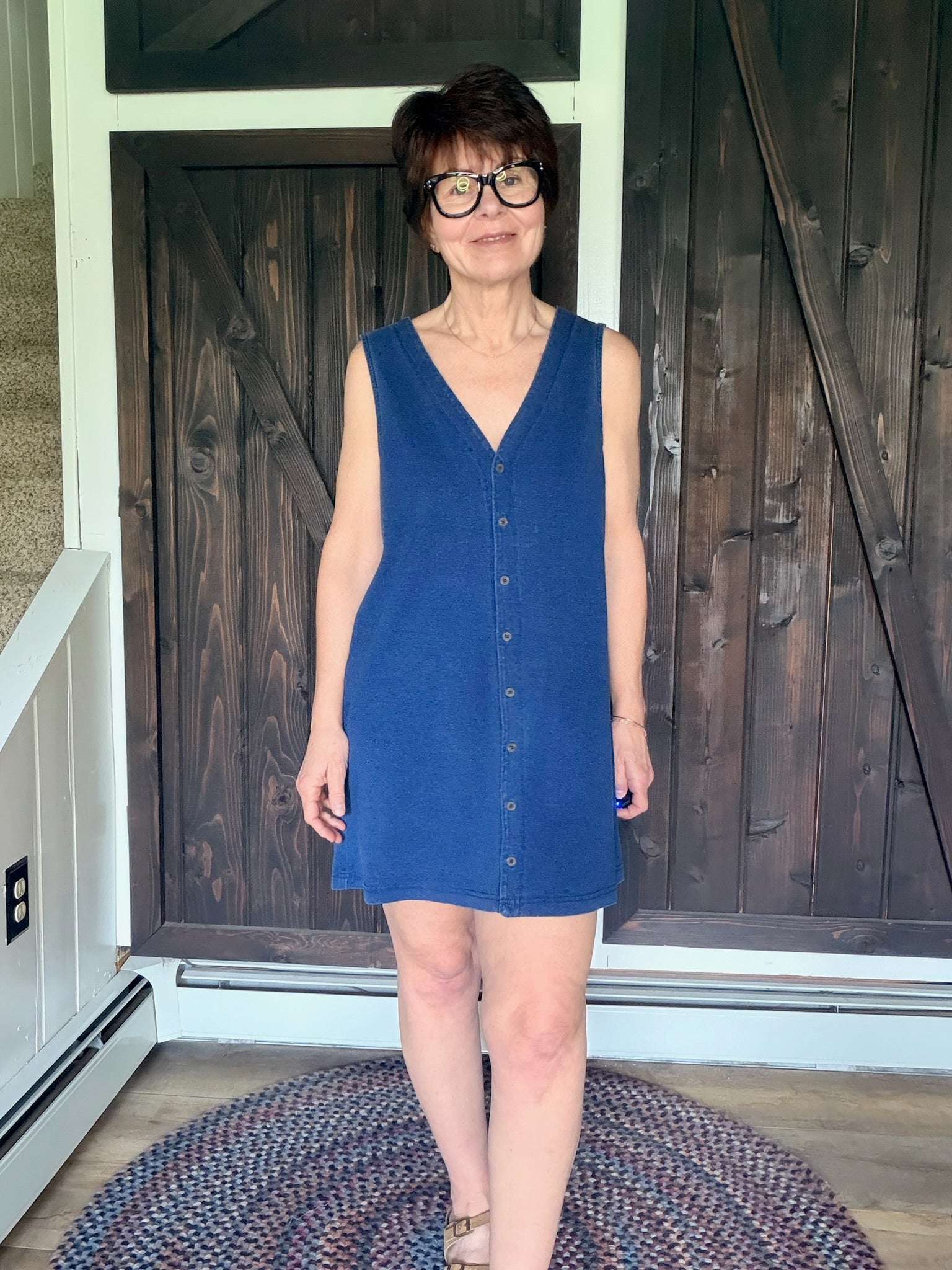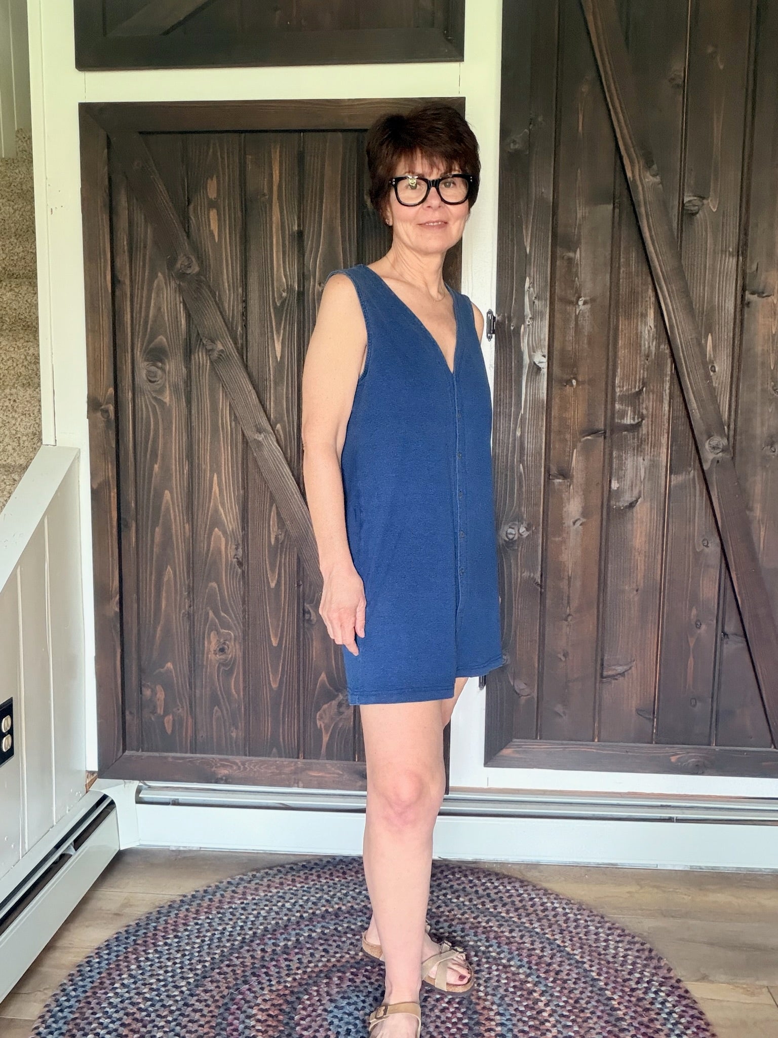 • Features: V-neckline, sleeveless design, button-front closure, mini length, lightweight feel, mineral wash finish