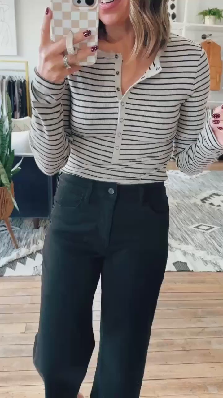 Meet your new favorite black jeans! These are from our favorite denim brand that always has the perfect mix of stretch and structure. They fit true to size with a wide leg style and crop length. They sit high waisted and are an easy option for tons of outfits!