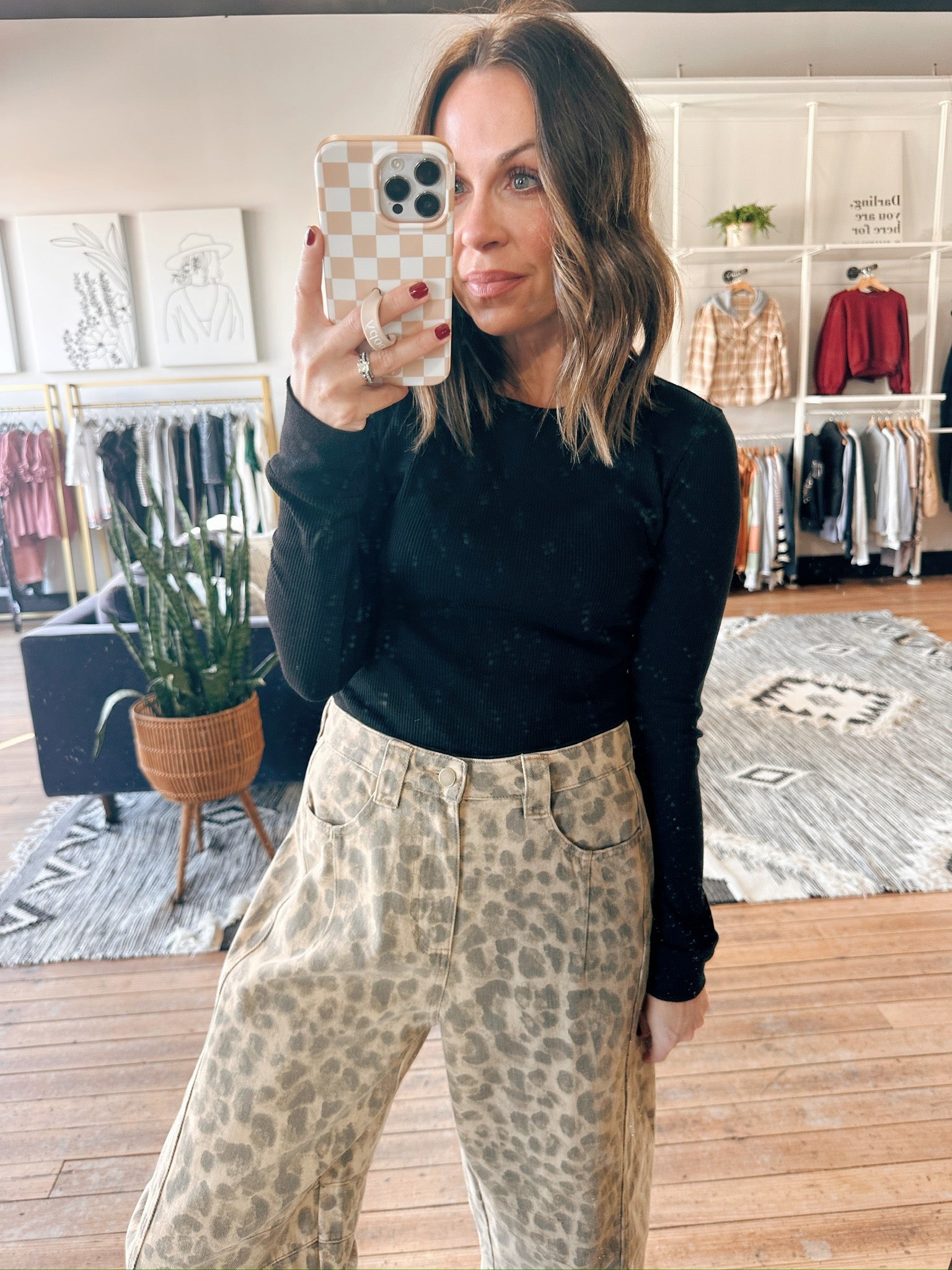 The Jade Leopard Printed Barrel Pants blend bold style with everyday comfort. Crafted from comfortable fabric, these leopard print pants feature a relaxed barrel-leg silhouette that’s both trendy and flattering. Perfect for women’s casual or chic outfits, they pair beautifully with a fitted top or cozy sweater for a boho-inspired look that transitions seamlessly from fall to spring.