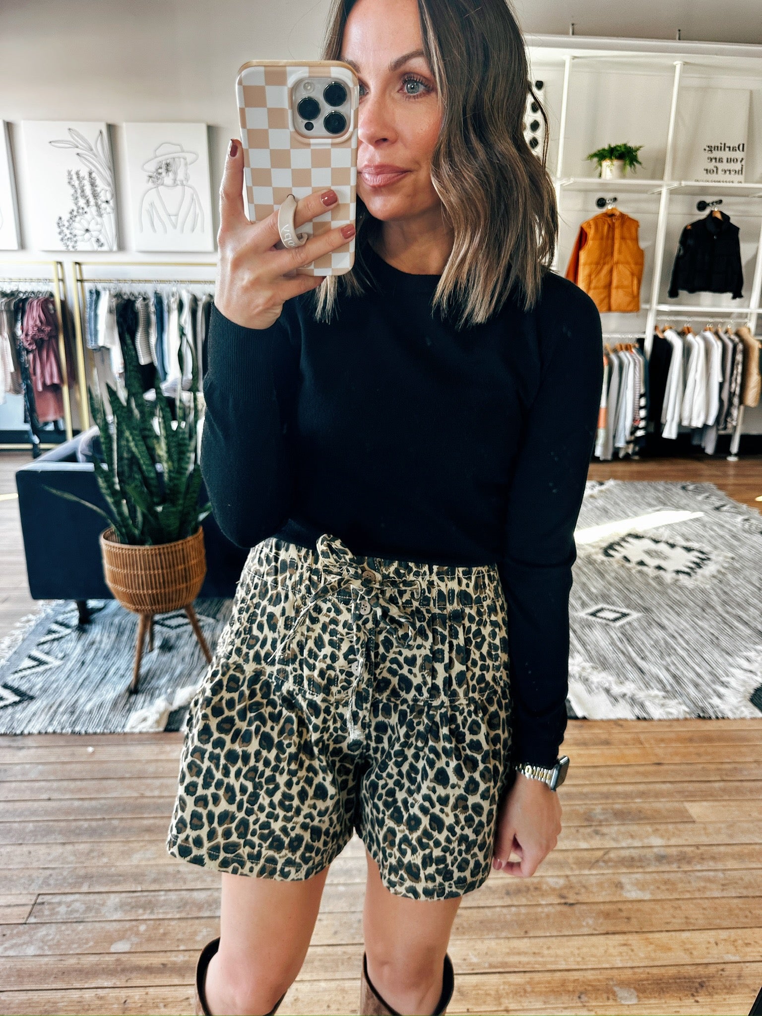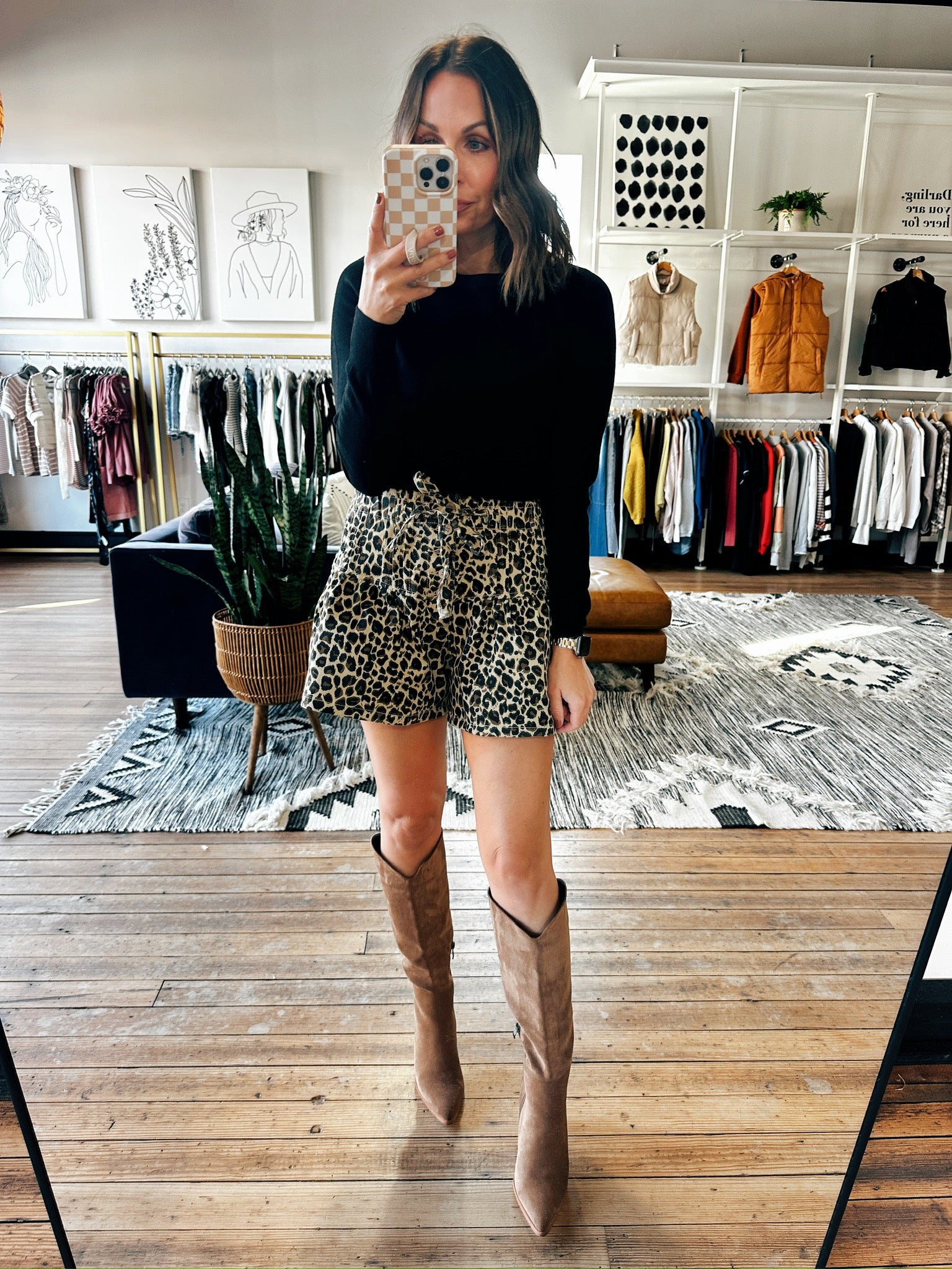Bring a boho, chic vibe to your look with these leopard print mini flare denim shorts. Designed with pin tuck details, a comfy waistband, and a relaxed fit, they’re perfect for casual days in women’s fall fashion, spring, and summer.
