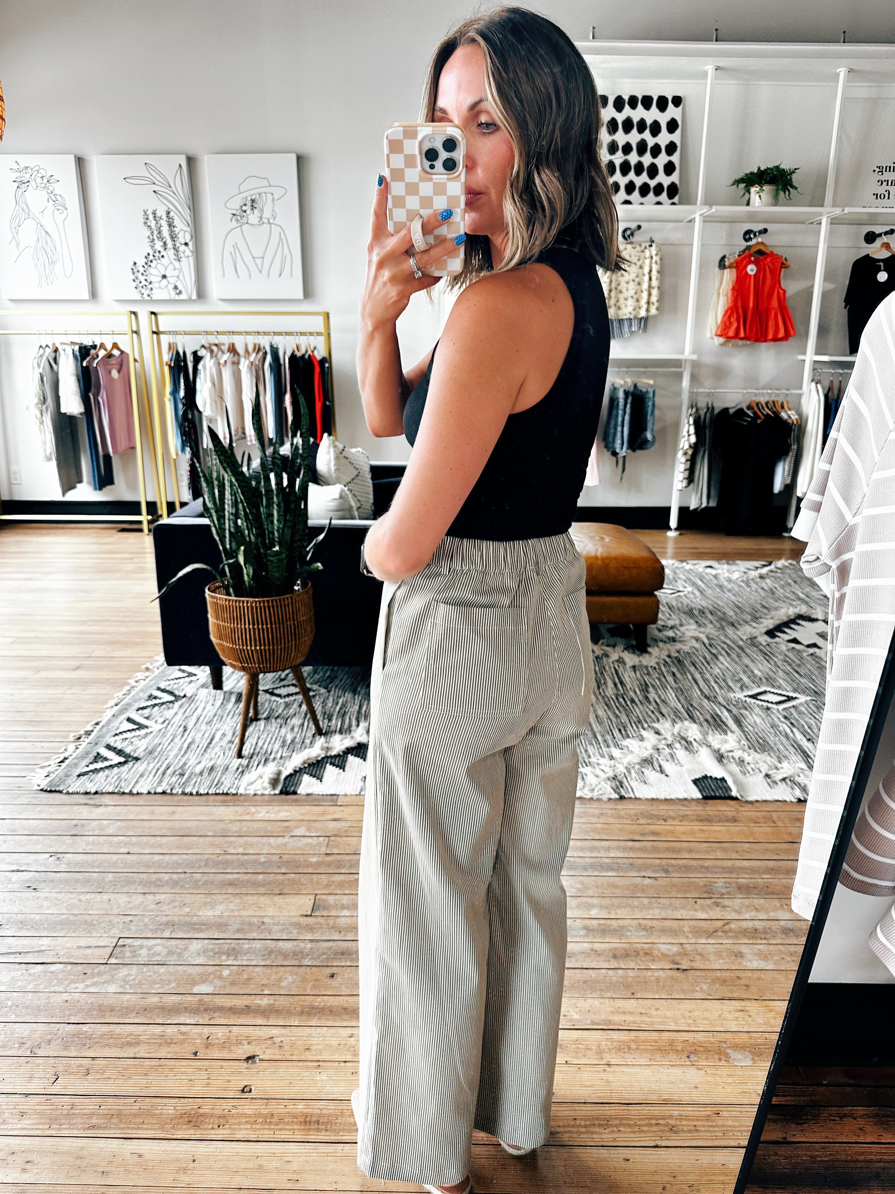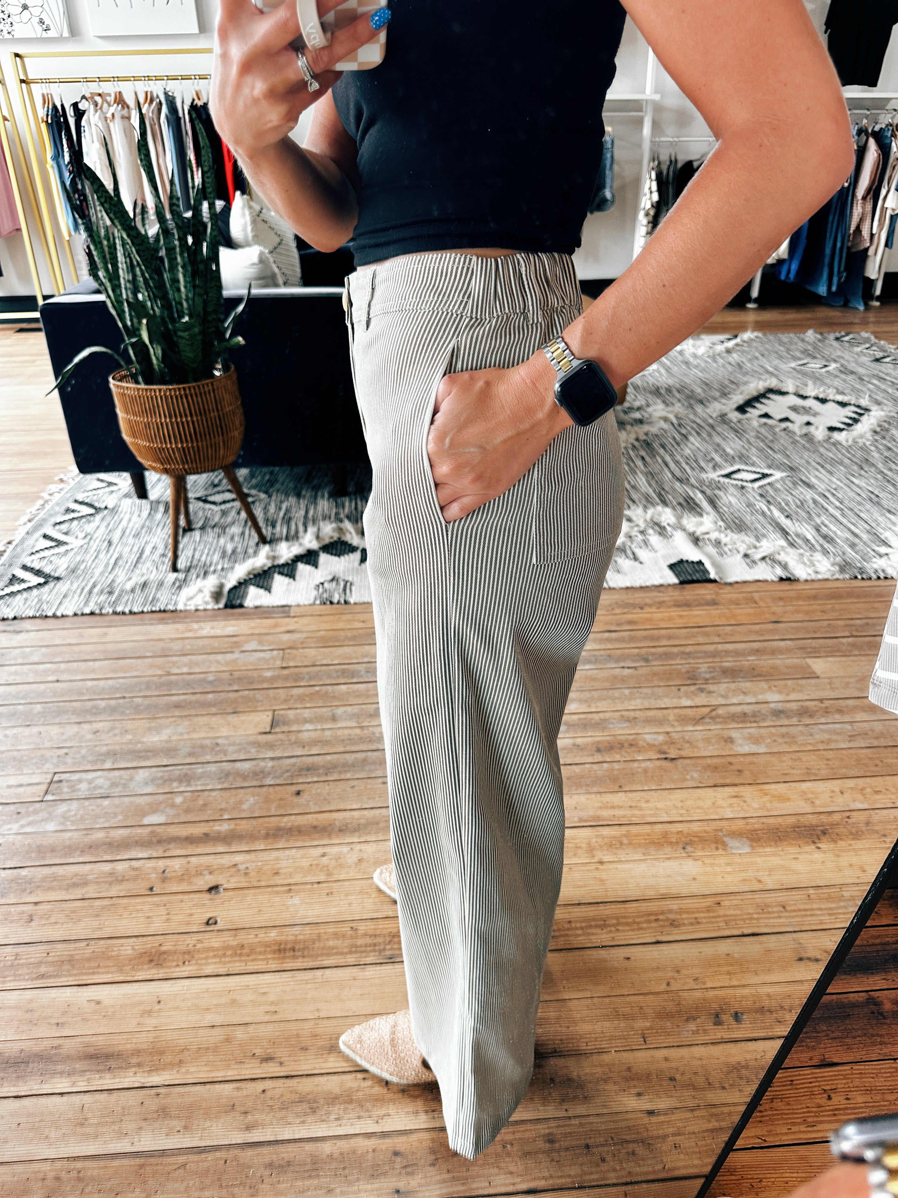 Simone Espresso Striped Wide-Leg Pants -ALL SALES FINAL