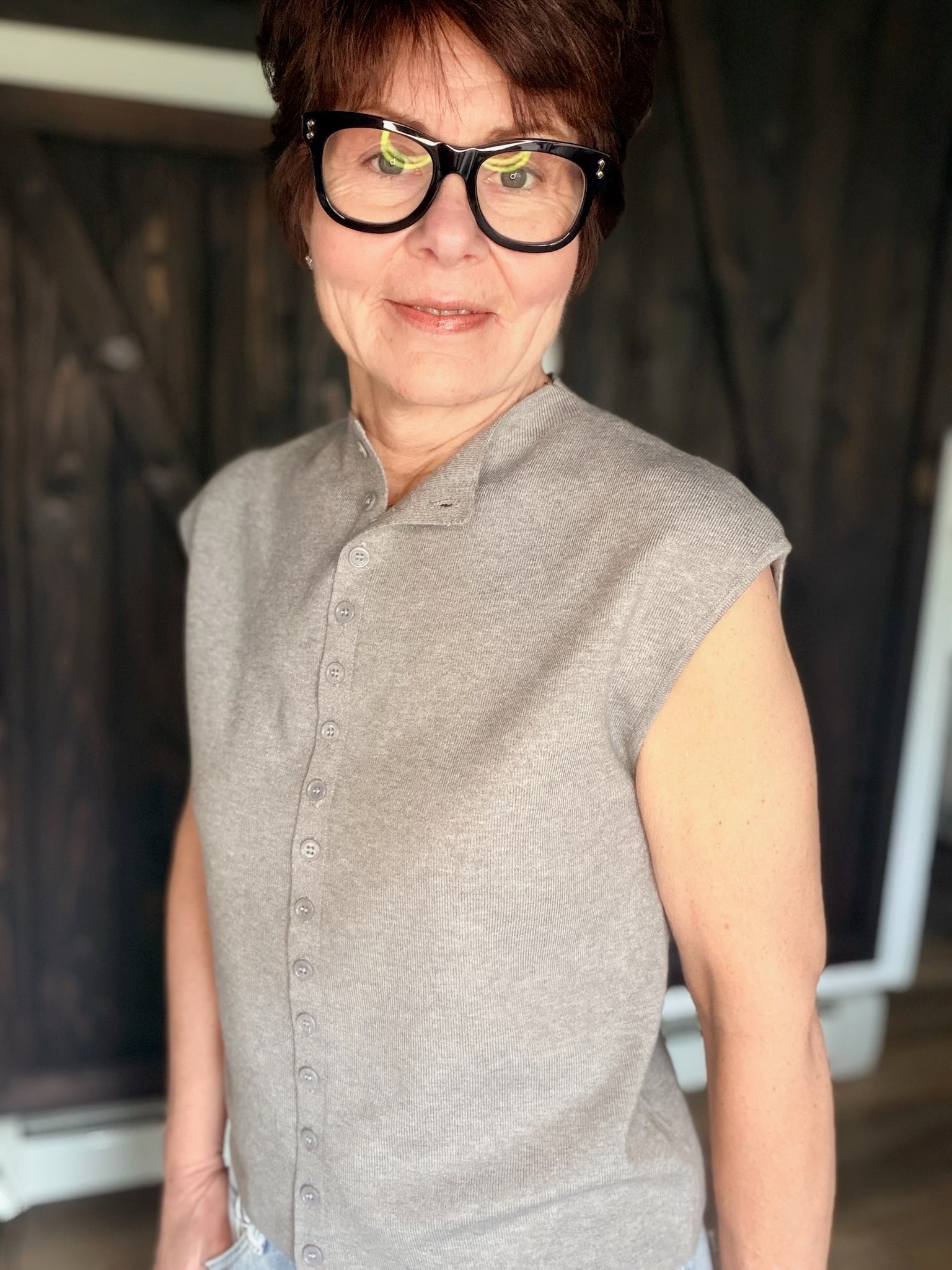 Things Between – Emilie Cap Sleeve Mock Neck Cardigan - Heather Grey