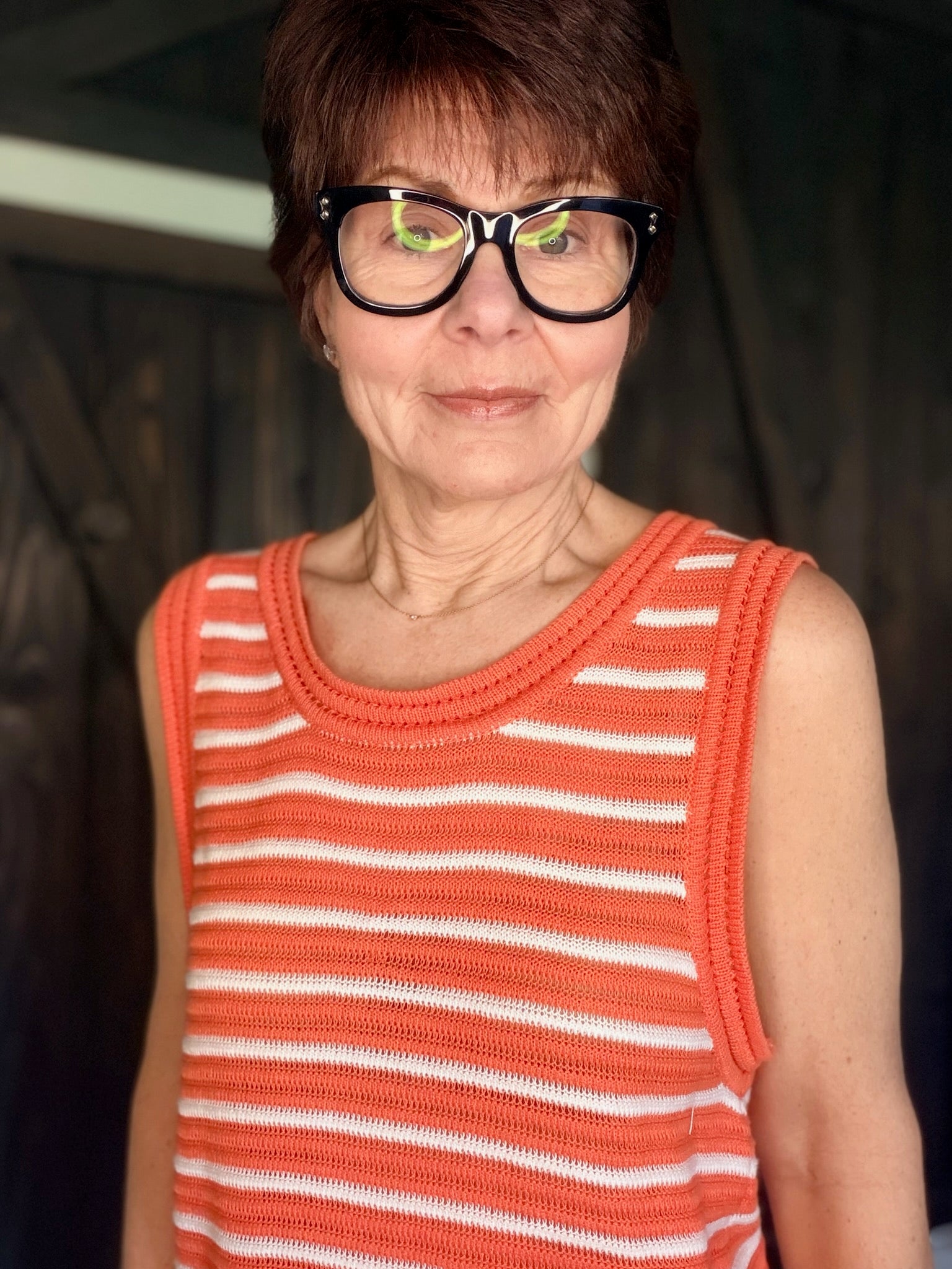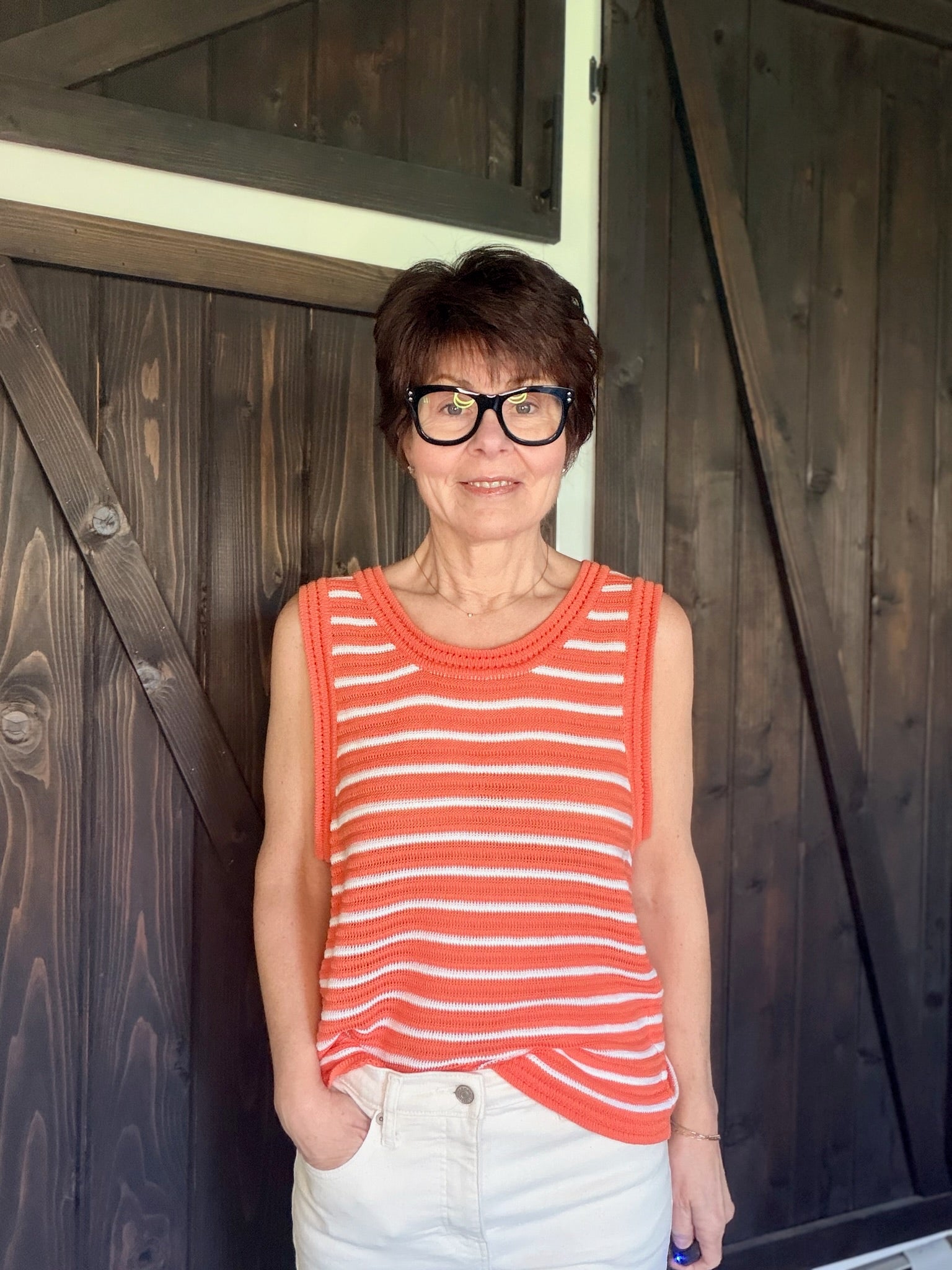 Orange/white sleeveless sweater vest.  100% cotton.  Airy and lightweight