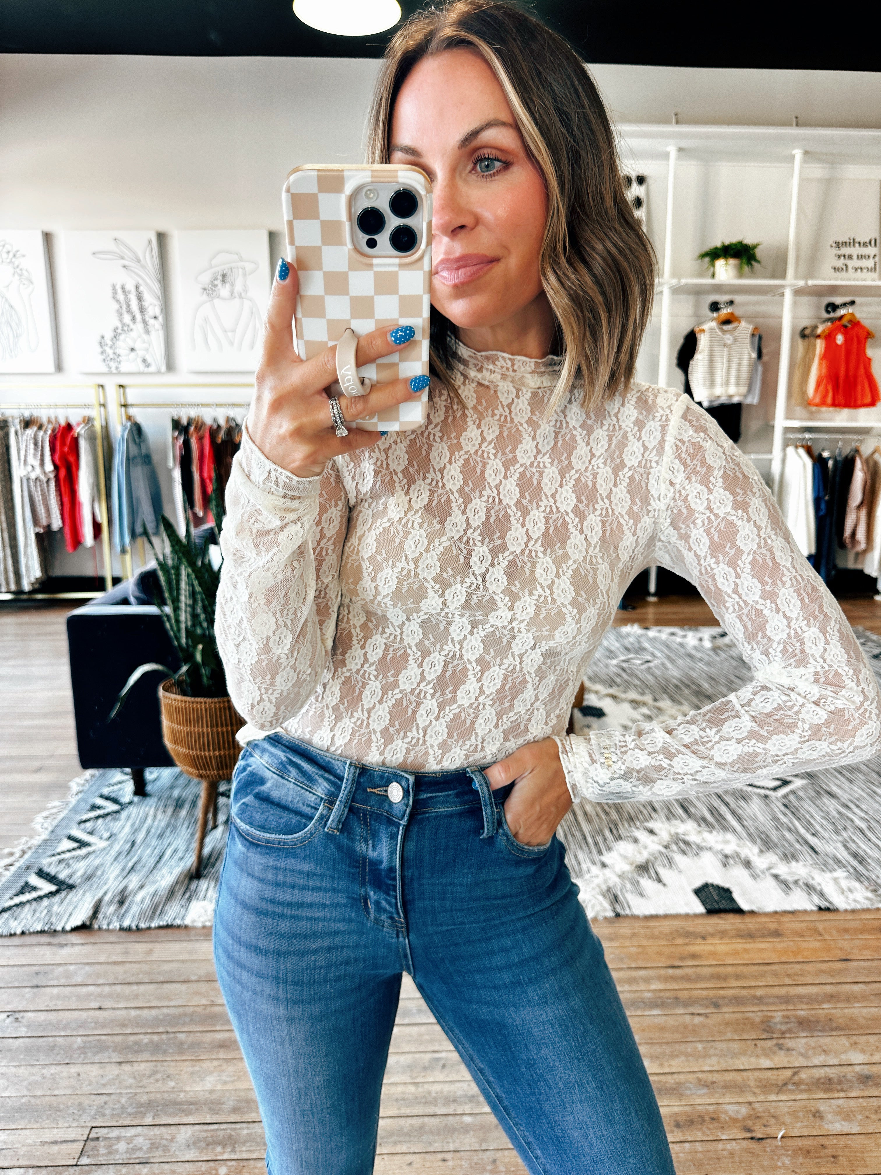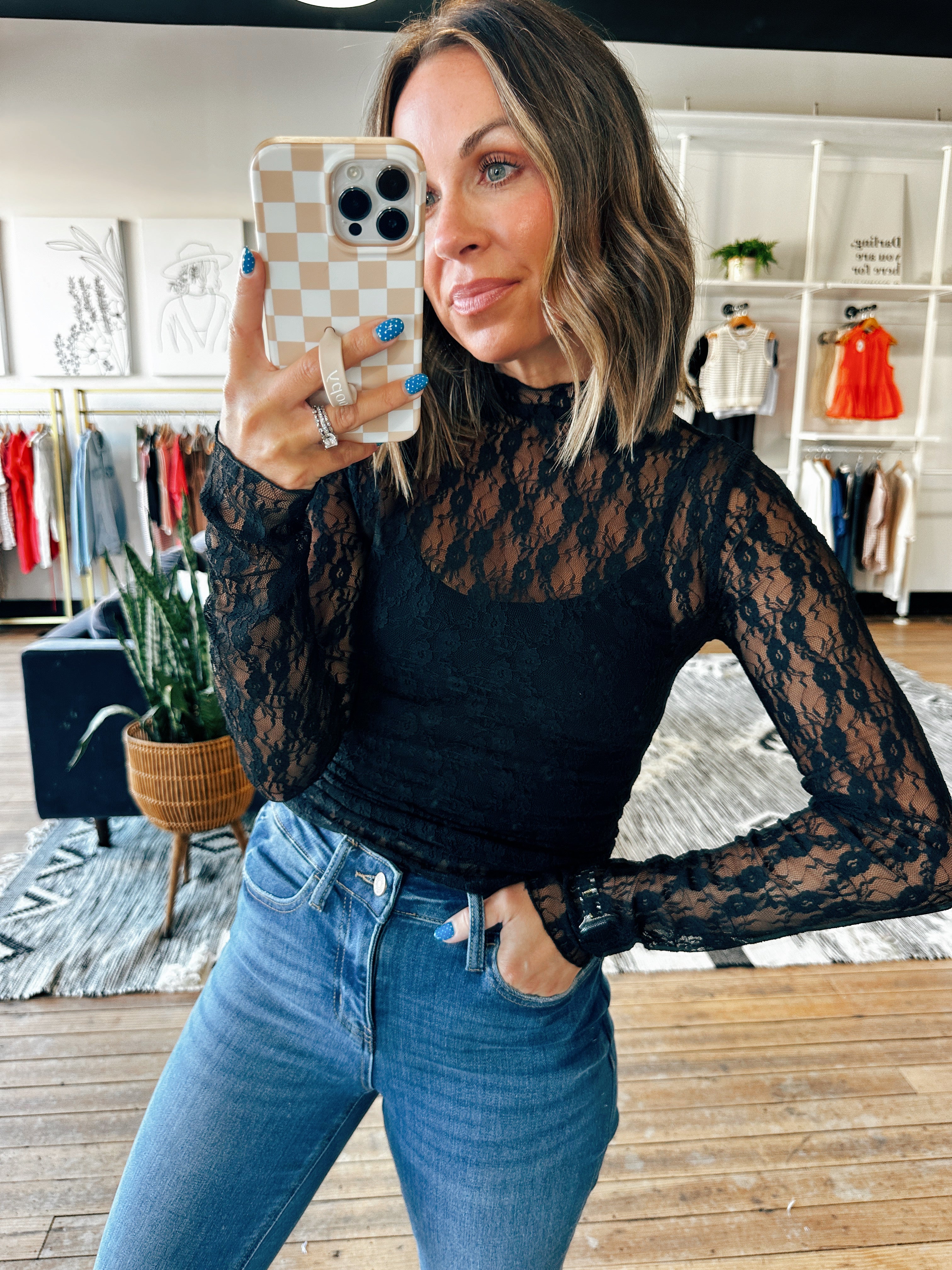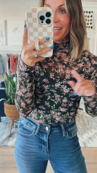 These pretty mesh lace long sleeves have been flying off the shelves at VerClare! We brought these in 5 color options, all just as cute as the next! They fit true to size and are a fitted style with modest neckline. They are a sheer mesh, so we love them paired with a tank or brami underneath, or for throwing under a tee or sweater vest to add a fun pop of print or texture!