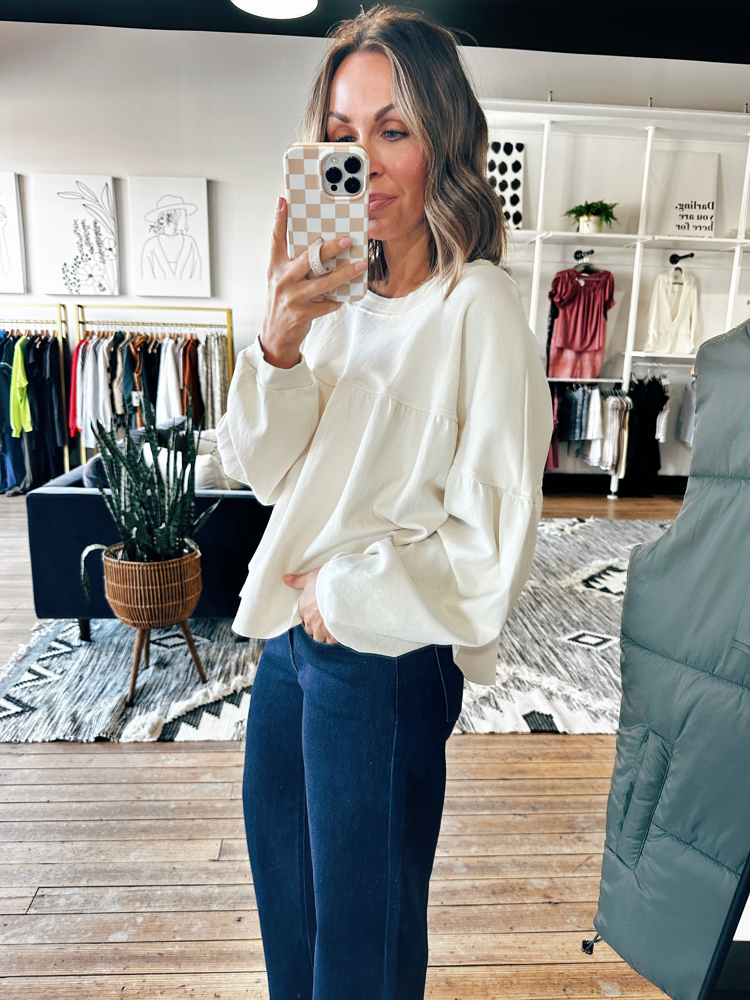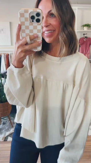 Cream Hem Long Sleeve Top -ALL SALES FINAL