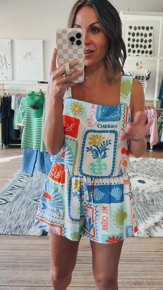 This set has us ready to book a flight! This is a darling matching set for all your summer vacations! This comes with the square neck flowy tank and the shorts. Both pieces fit true to size and can be paired together or separately!