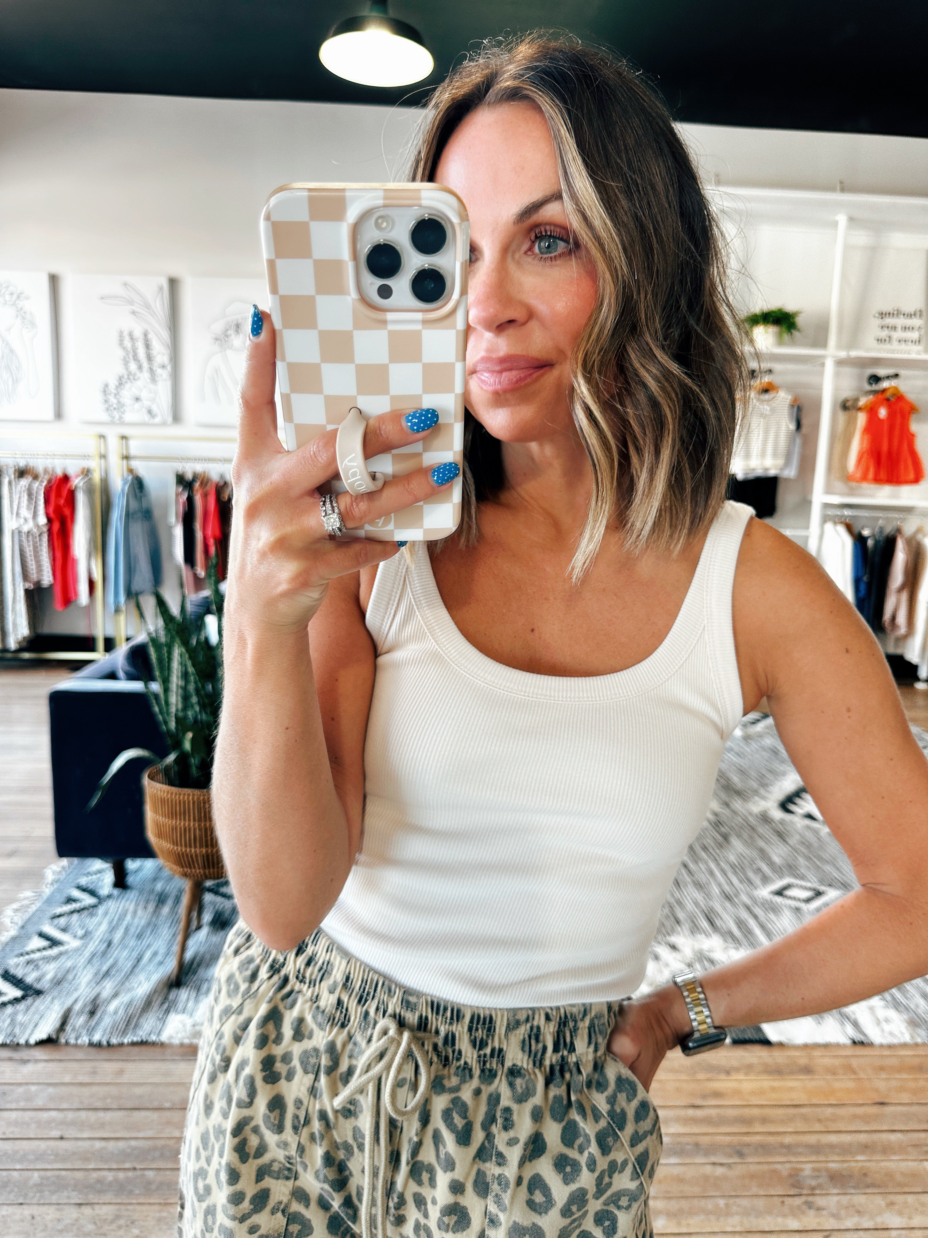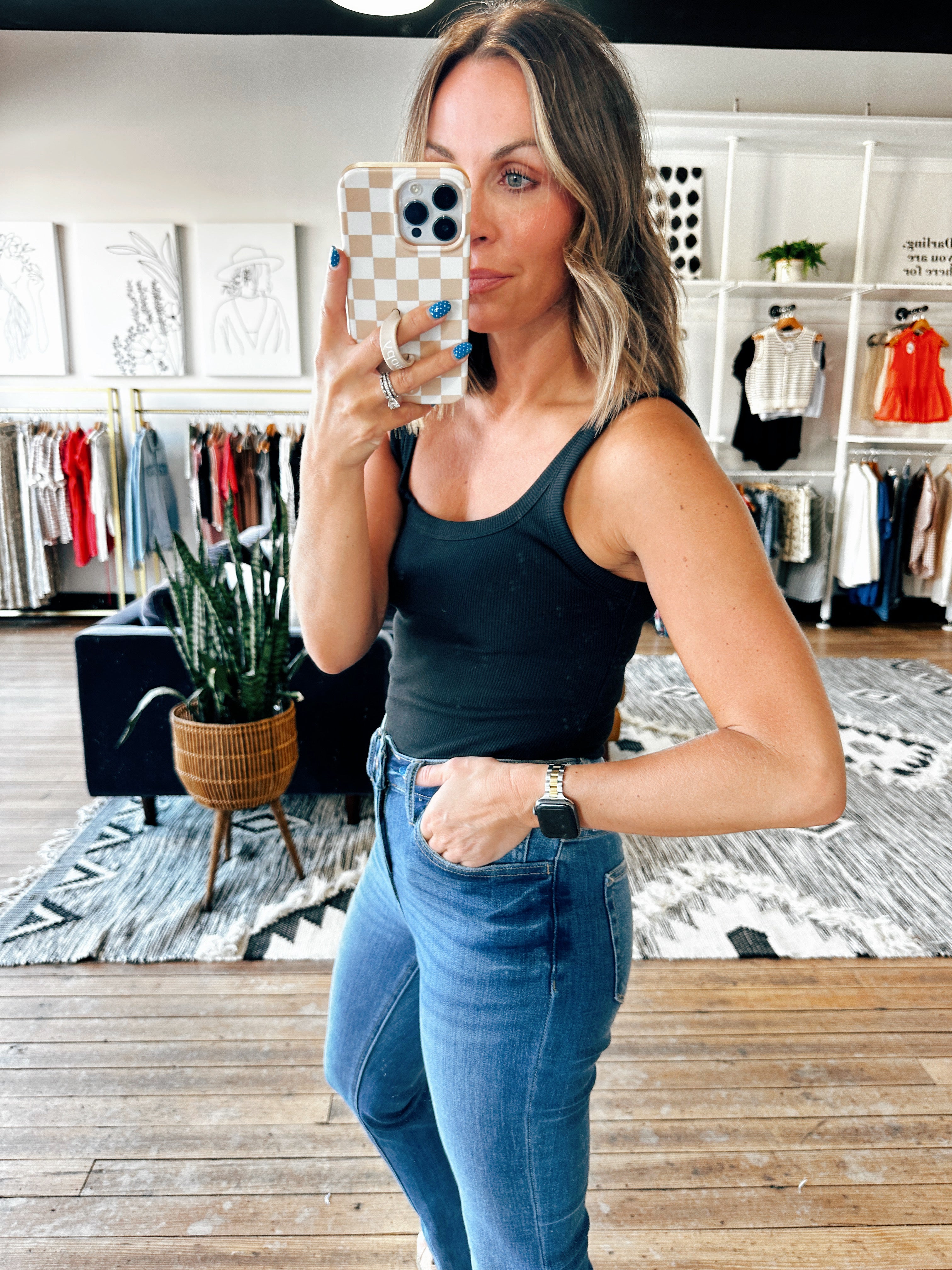 Two staple color options in this thick ribbed tank! This is going to be a go-to for pairing under sweaters, cardigans and shackets this fall. It fits true to size and is a fitted style bodysuit that will give you the perfect tucked in look!