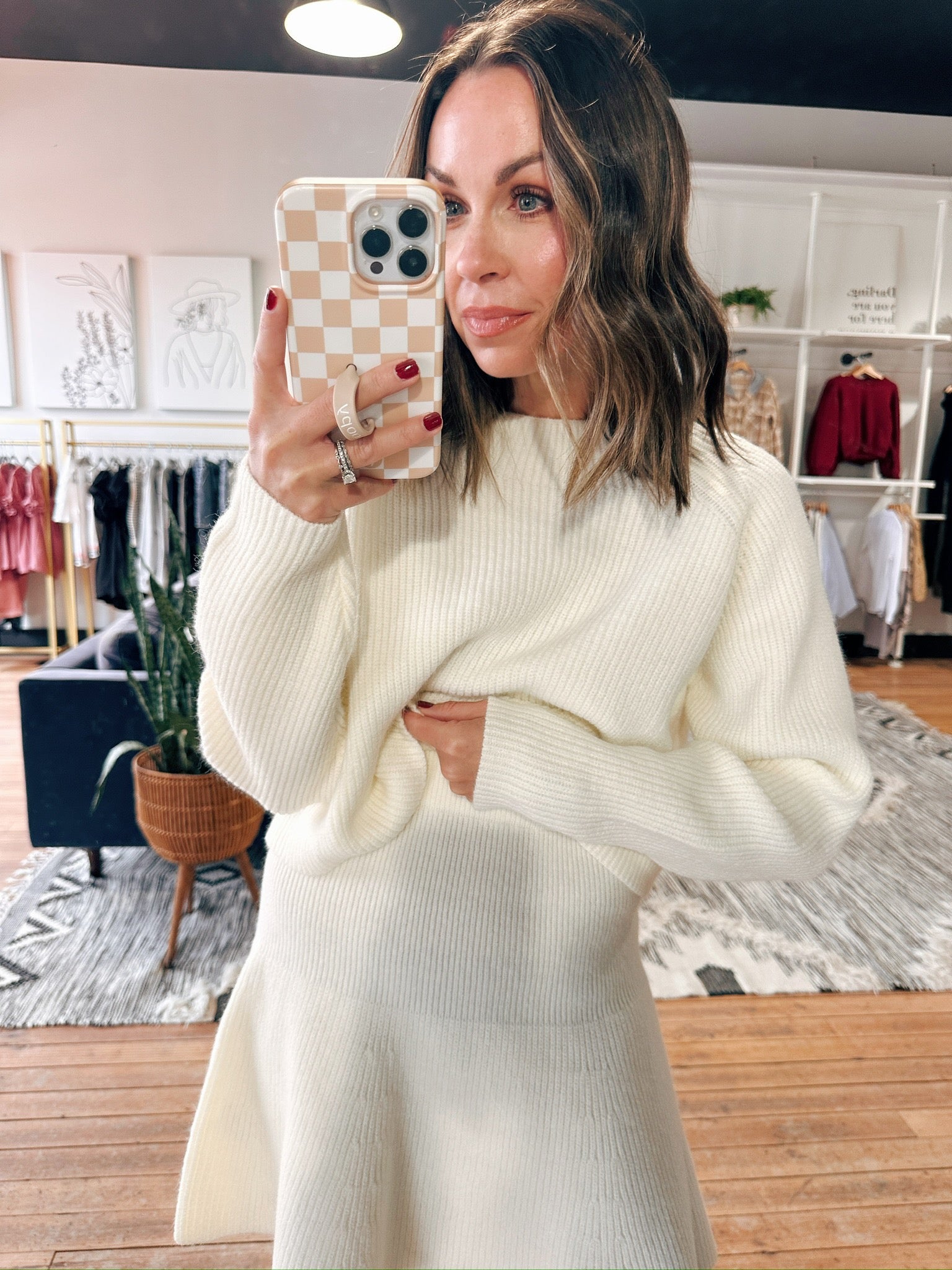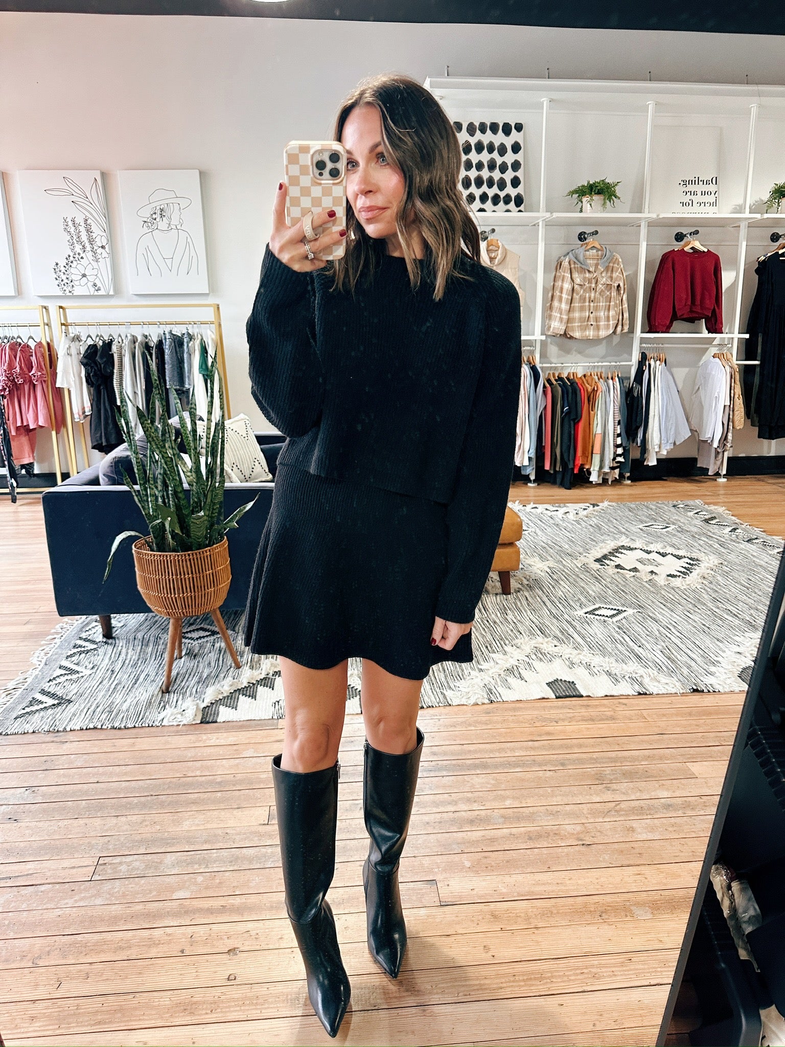 Stay effortlessly chic and cozy in the Amber Knit Flare Set, available in two colors. This matching set includes a long sleeve knit top paired with a flared knit skirt for a flattering, feminine silhouette. Crafted from soft, stretchy fabric, it offers all-day comfort while keeping your style elevated. This versatile set transitions seamlessly from holidays to evening outings with ease.