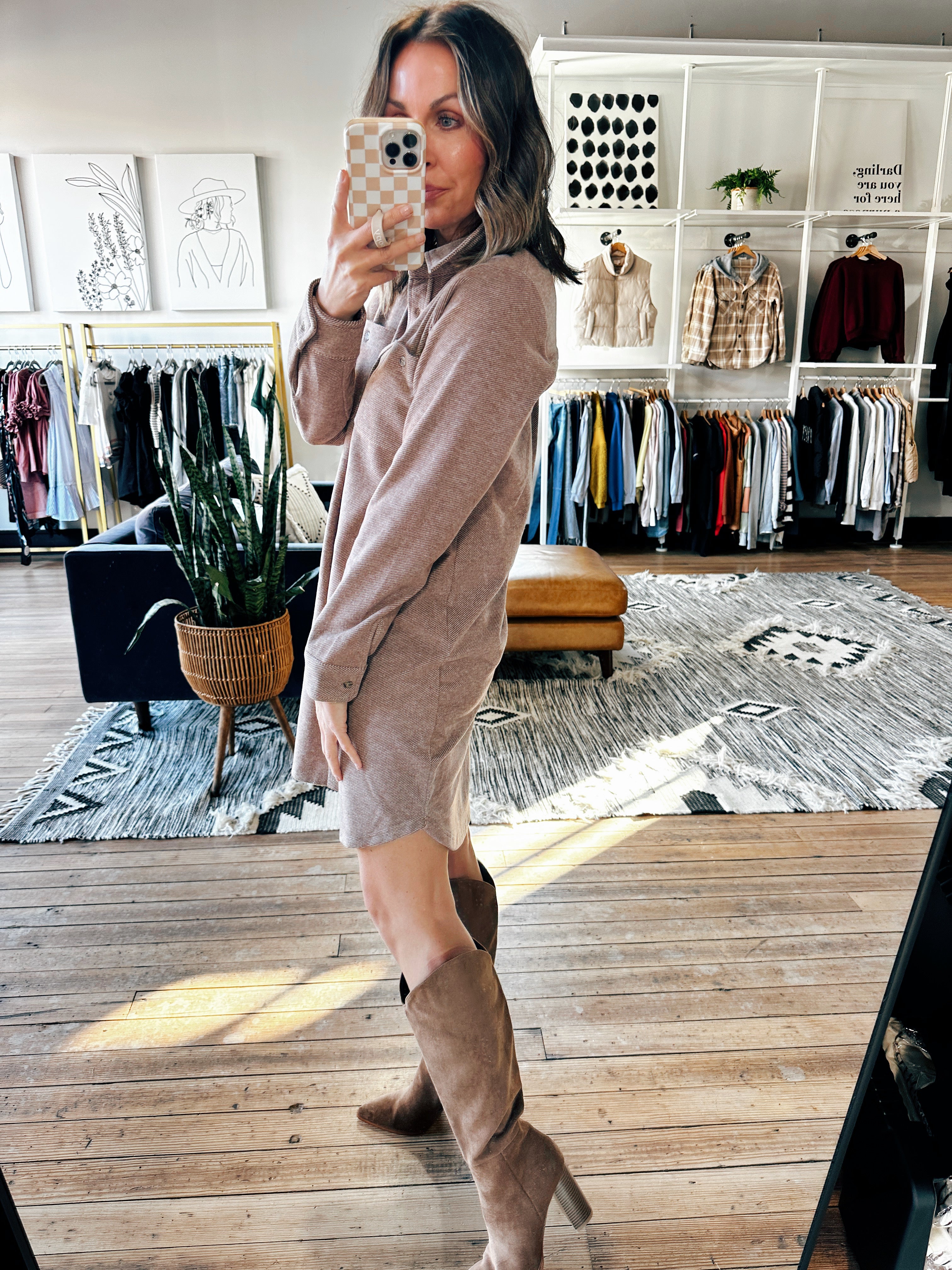 Step out in effortless style with our Leslie Dress, designed for an easy, but classic look! Made from soft, flowy fabric, this dress flatters every shape while offering a relaxed yet feminine silhouette. True to size and great for casual days or heading to the office.