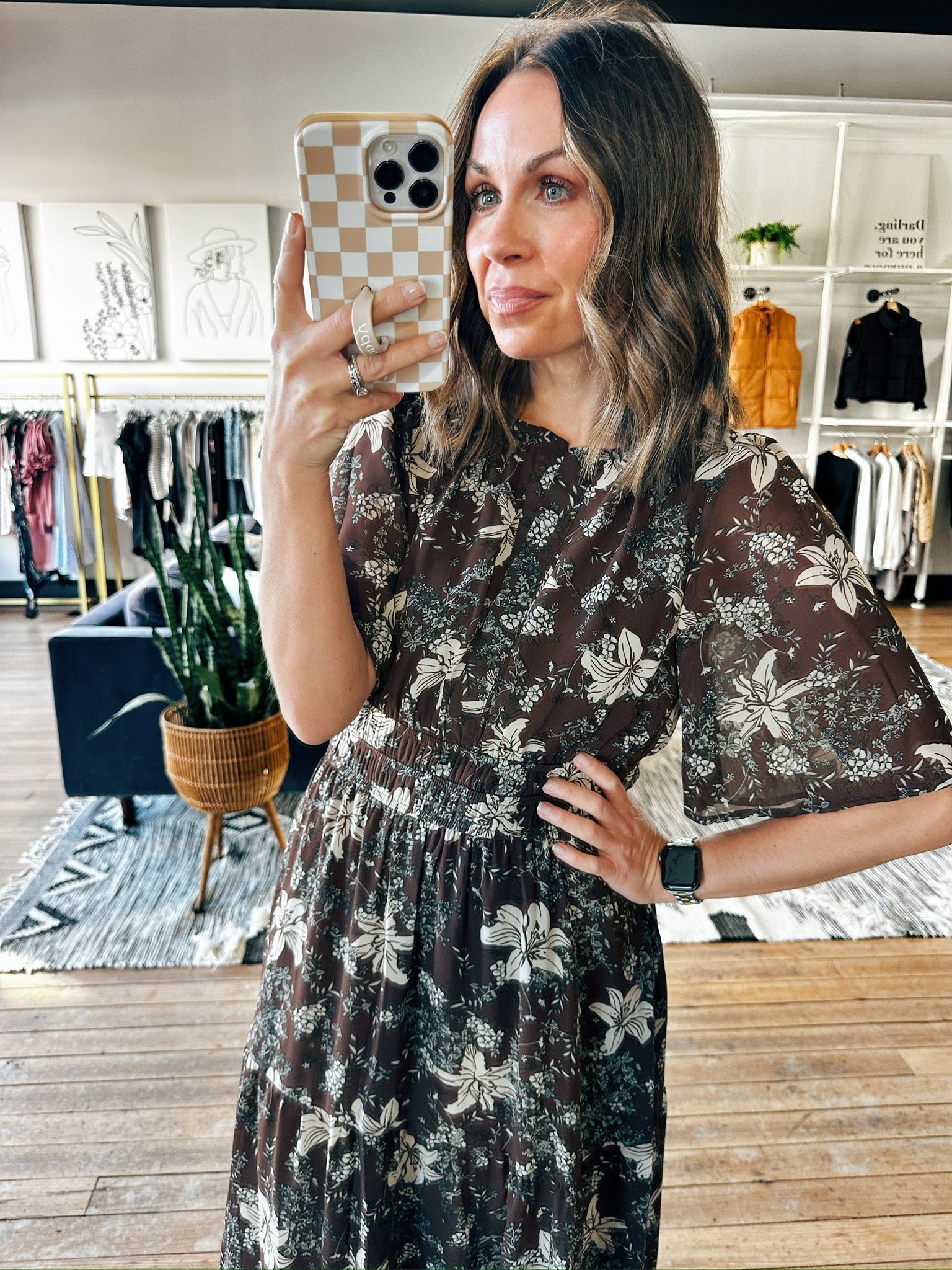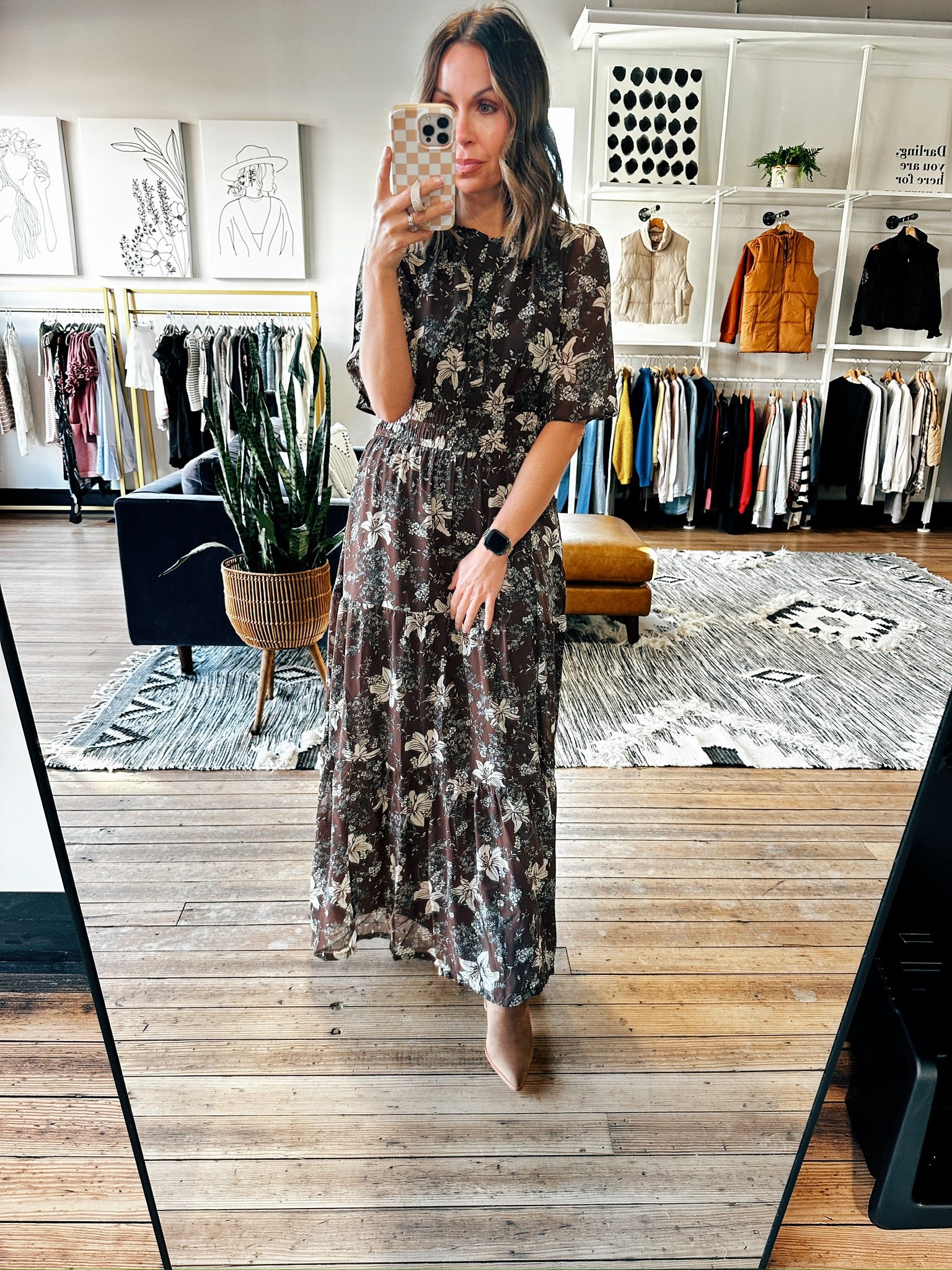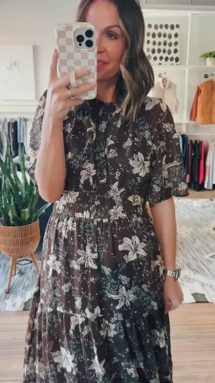 Step into effortless elegance with our Nalen Flutter Tiered Maxi dress! This has 1/2 length flutter sleeves with a soft, flowy fabric and a boho-inspired print. Perfect for events, holidays or family photos with boots or heels!