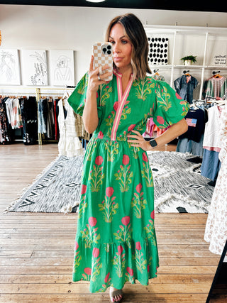 Brown Floral Tie-Waist Dress with Pockets -ALL SALES FINAL