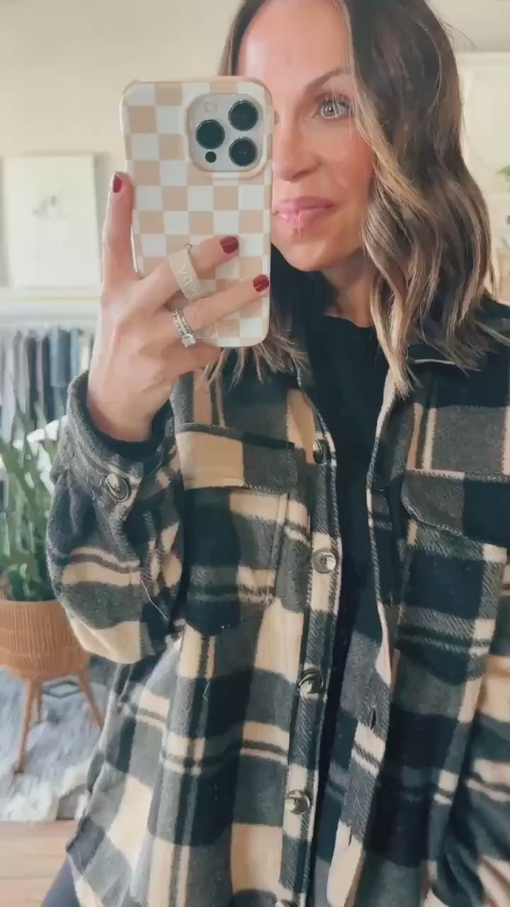 The Ailani Long Sleeve Check Shacket is the perfect cozy jacket for this season! Crafted from soft fleece fabric, it features a classic check print, button-down front, and long sleeves for a relaxed, layered look. Perfect for women’s fall and winter fashion, this shacket (shirt + jacket) offers the ideal mix of comfort and casual chic, keeping you stylish and snug all season long.