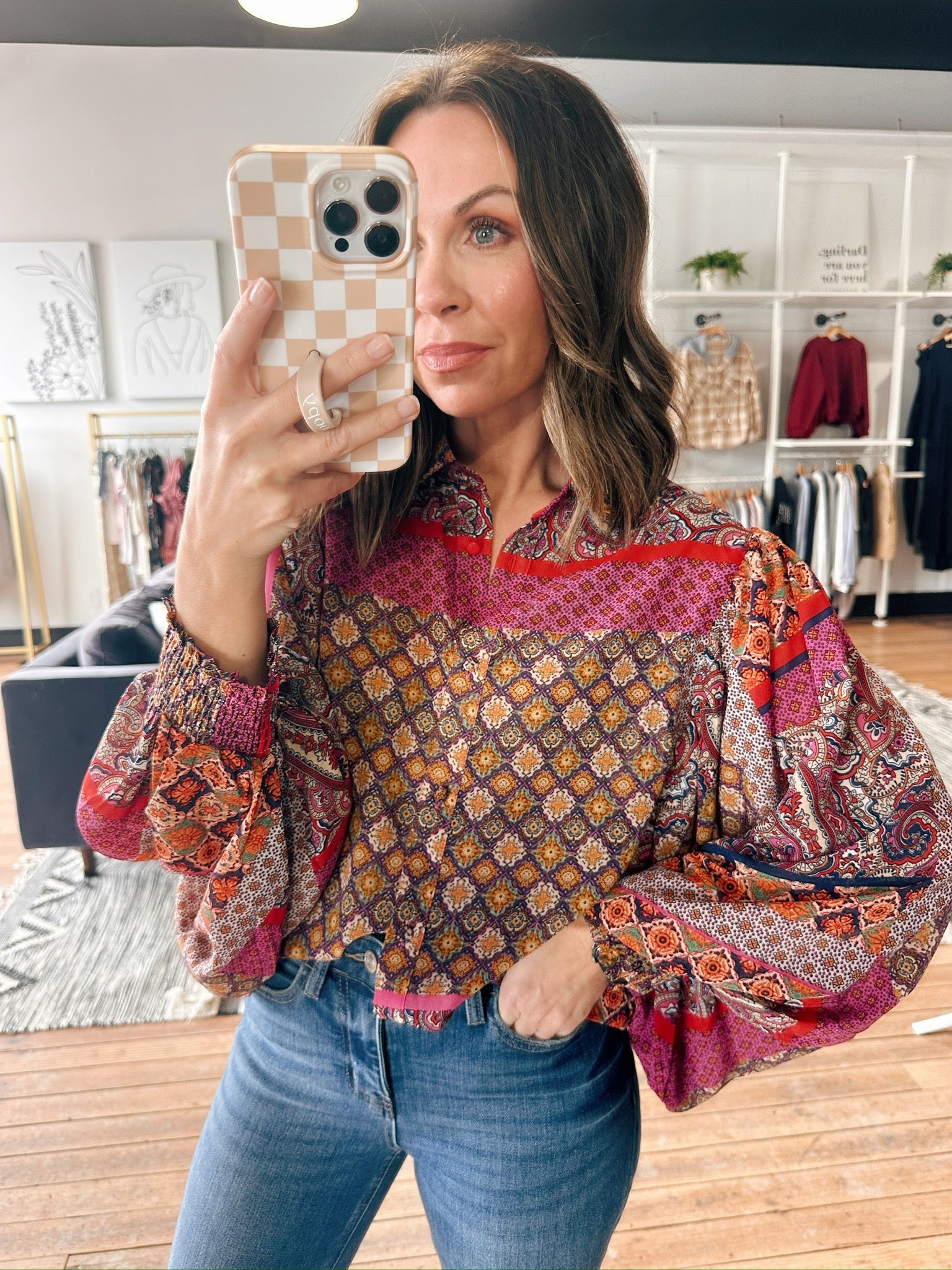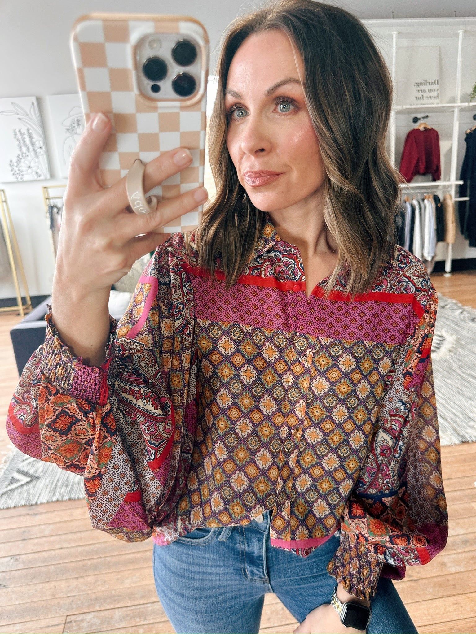 The Ariana Boho Puff Sleeve Top is a boho-chic, casual, and cozy addition to women’s spring, summer, and fall fashion. Crafted from lightweight woven fabric, it features a collared neckline, puff sleeves, smocked cuffs, and button-front closure for a relaxed, feminine silhouette. Its flowy fit makes it perfect for everyday wear, layering, or effortless boho-inspired outfits.