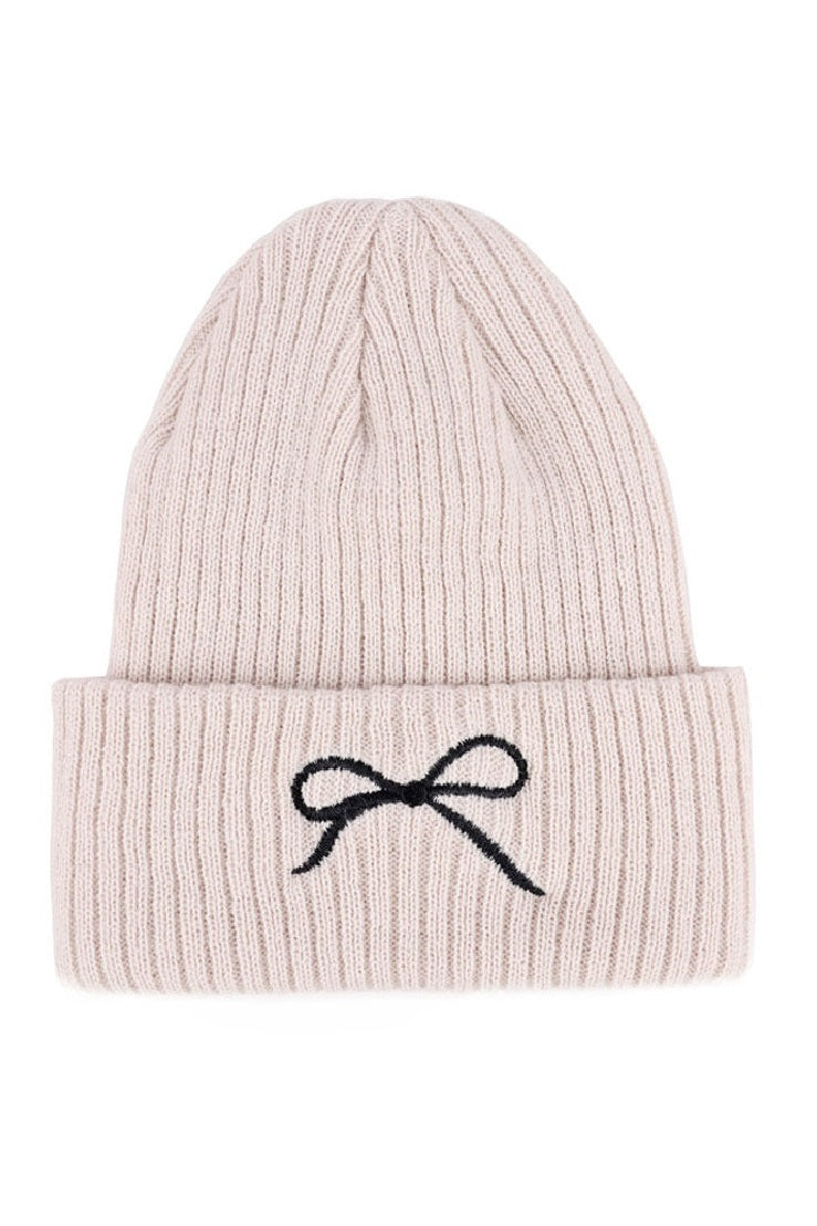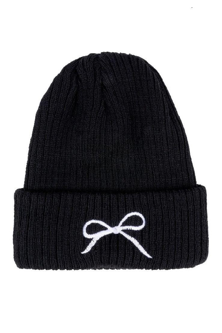 Coquette Bow Embroidered Knitted Beanie