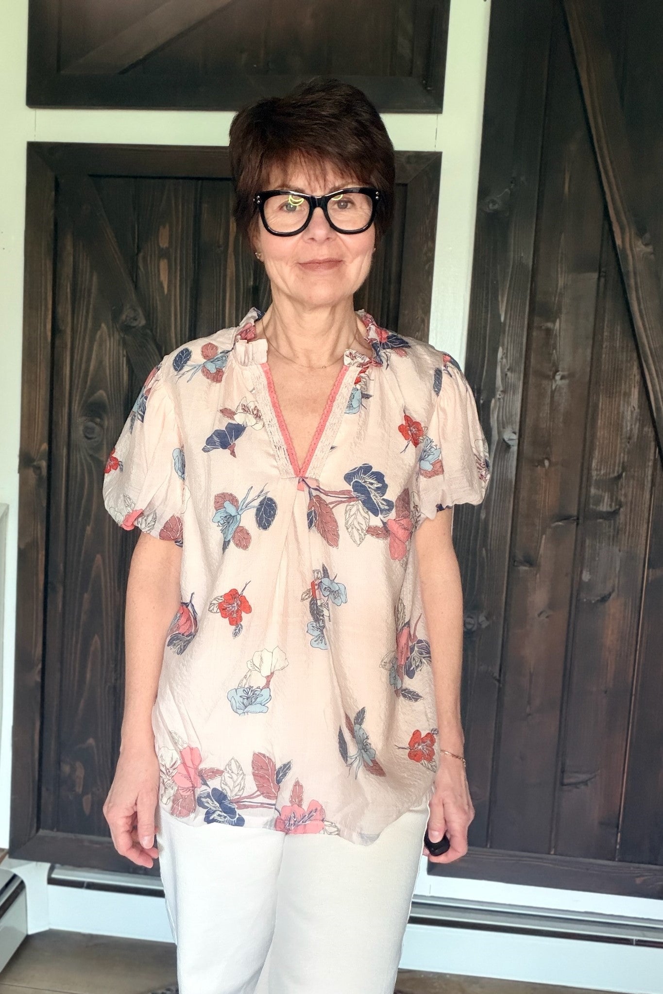 The Umgee Elia Floral Puff Sleeve Blouse is a beautiful lightweight woven floral blouse featuring short puff sleeves, a V-notch neckline with lace contrast trim, and a soft feminine silhouette. It fits true to size with a relaxed, flattering drape — perfect for brunch, church, casual workdays, or everyday wear. Made from a soft rayon-blend fabric, this piece offers breathable comfort while adding a delicate, romantic touch.