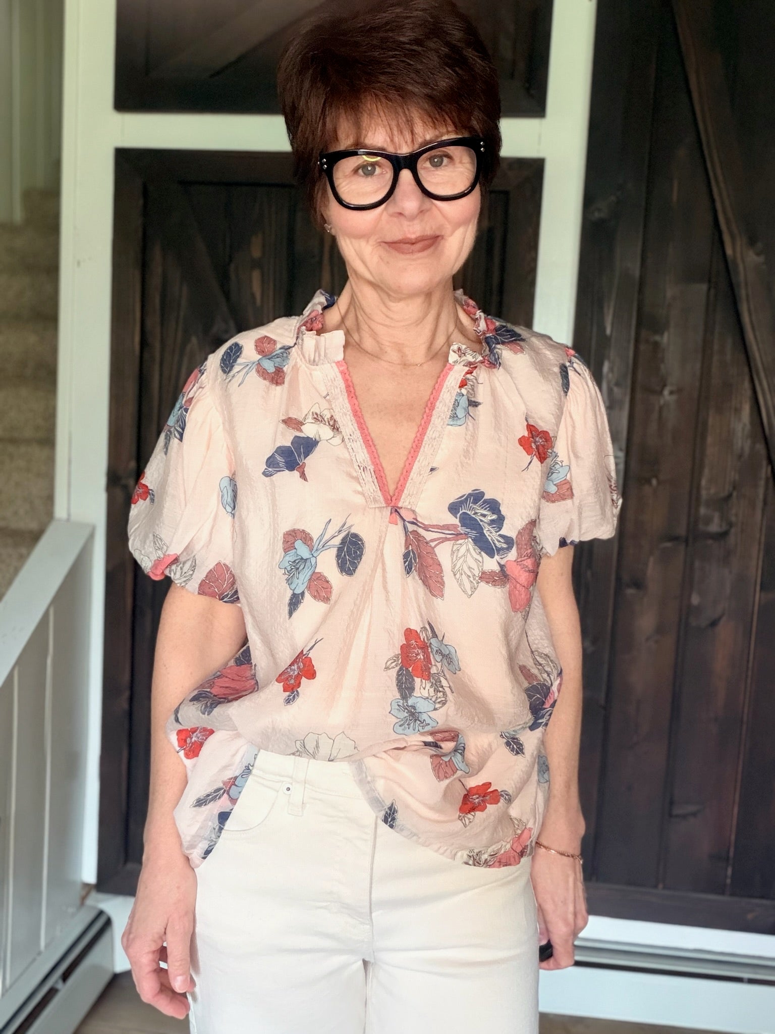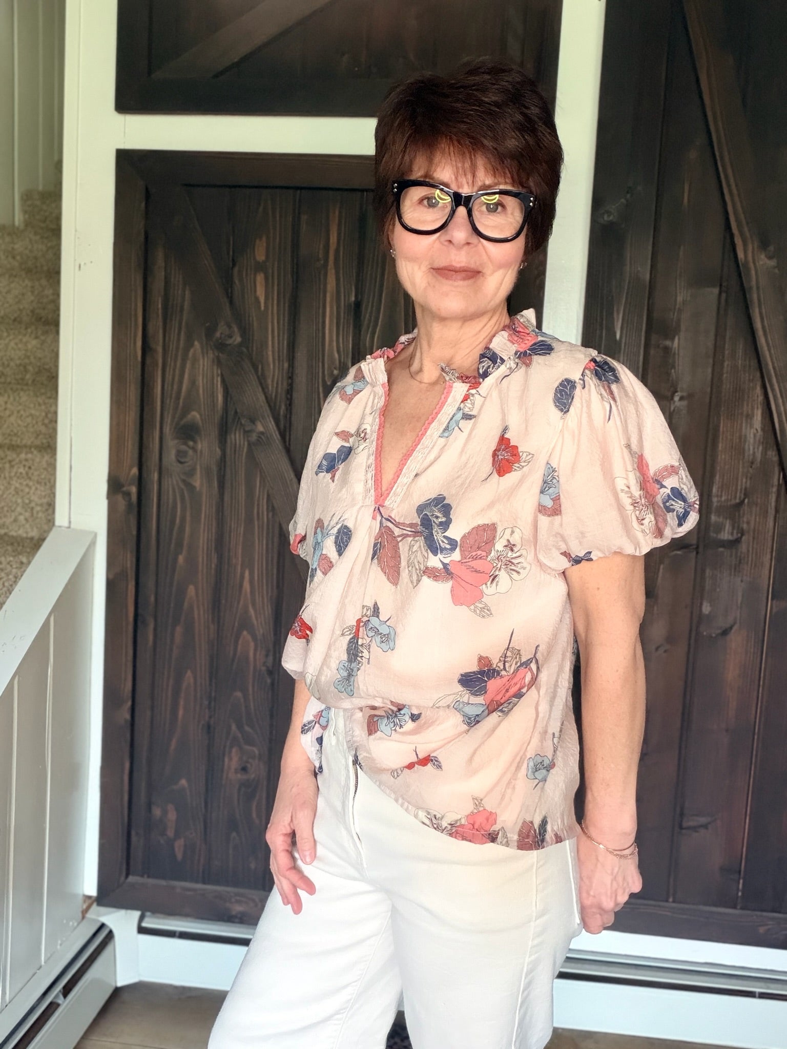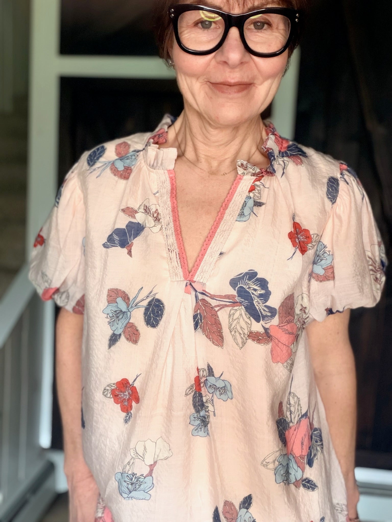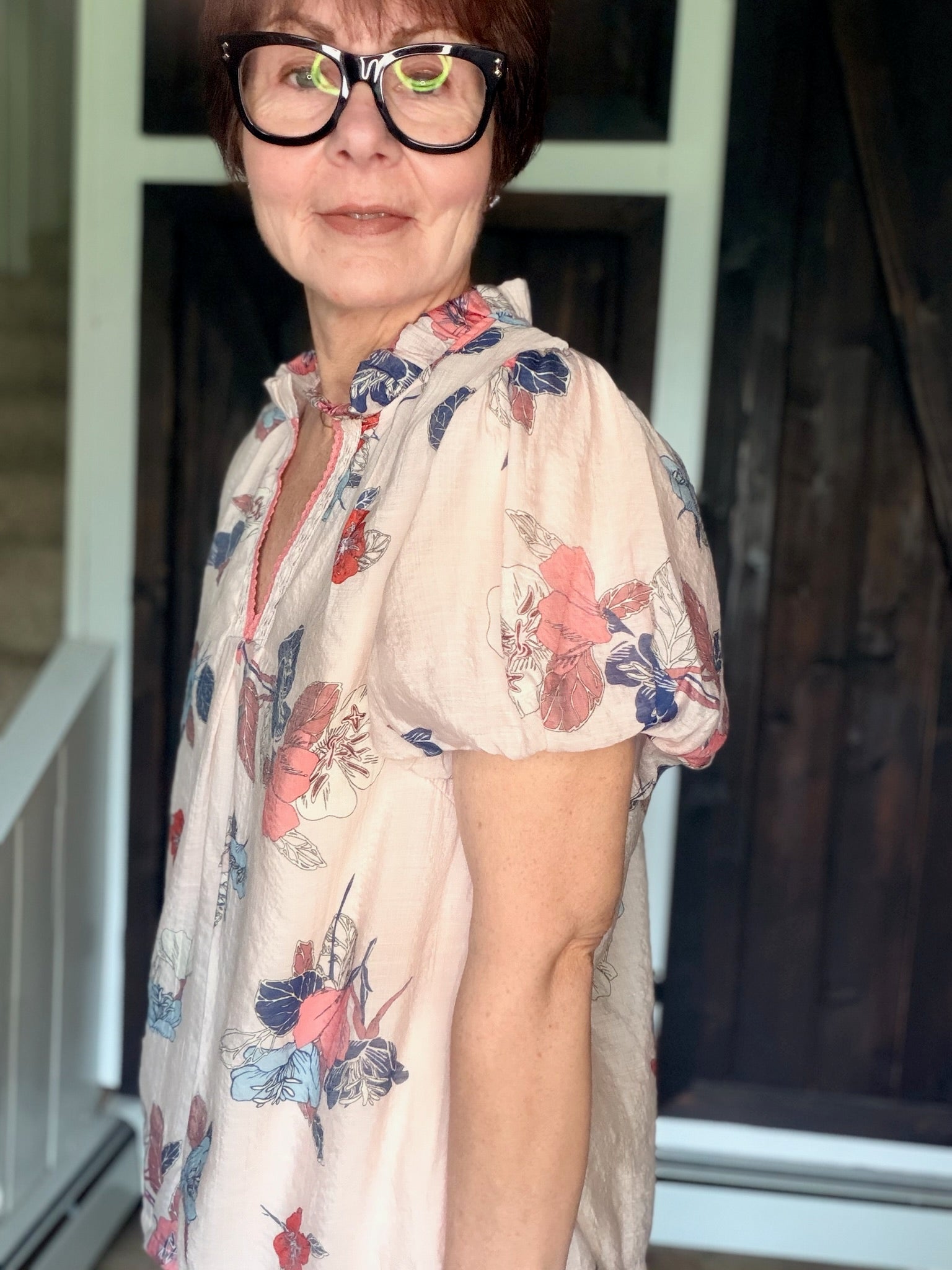 Umgee – Elia Floral Puff Sleeve Blouse - Lt. Pink