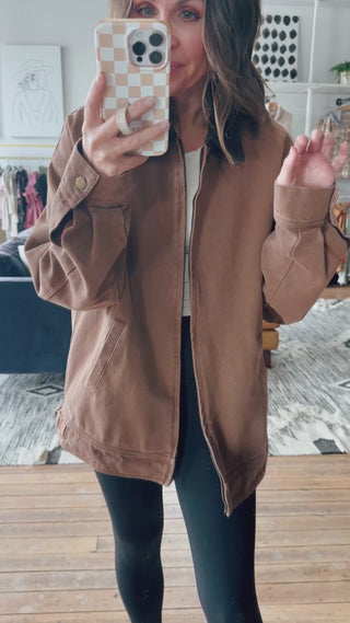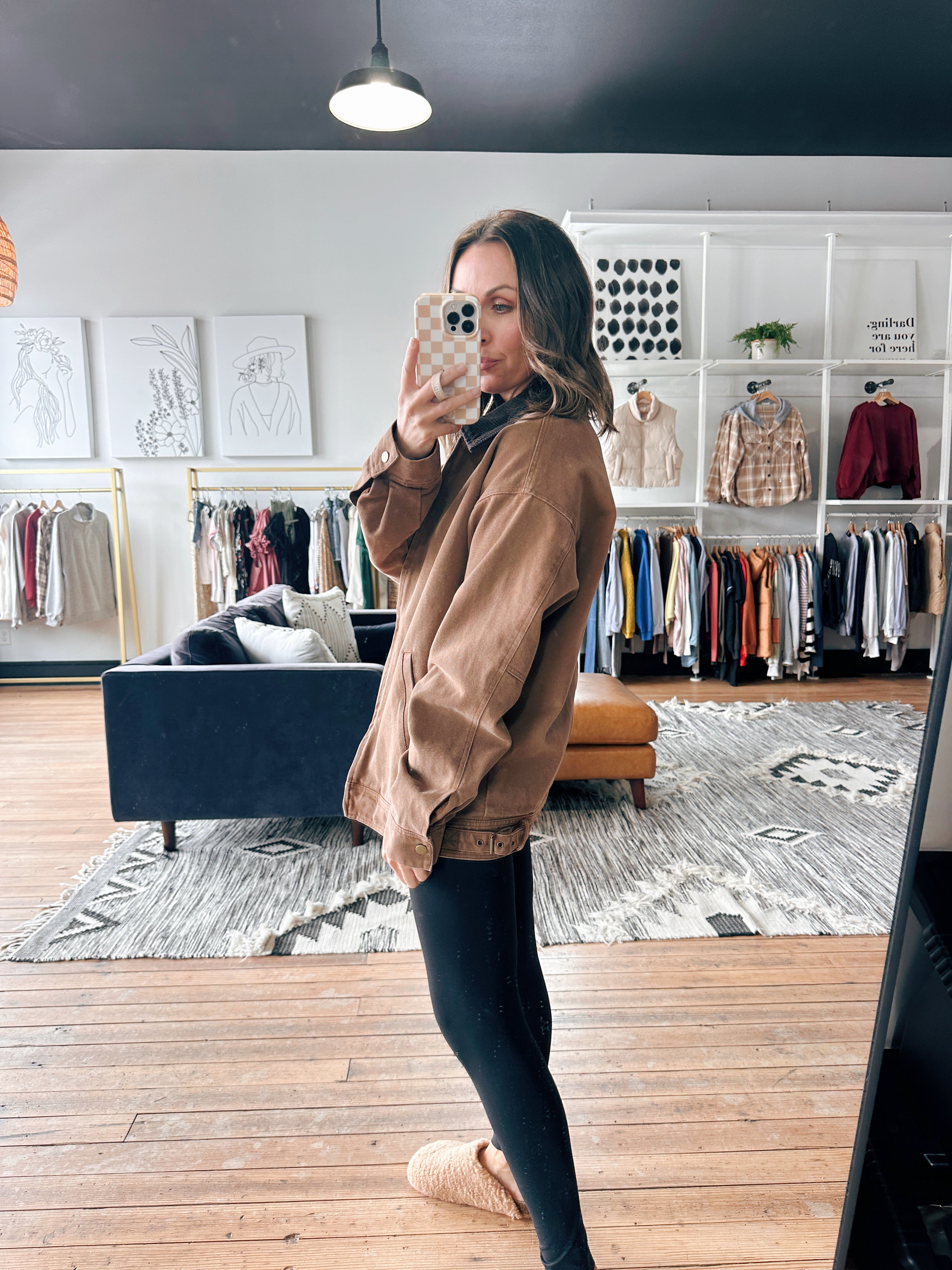 The Elliott Barn Jacket is a chic, casual, and cozy staple for women’s fall and winter fashion. Featuring a vintage-wash finish and a corduroy collar, this jacket offers a relaxed fit with timeless barn-style detailing. Perfect for layering over sweaters or tops, it delivers a boho-inspired, effortlessly stylish everyday look.