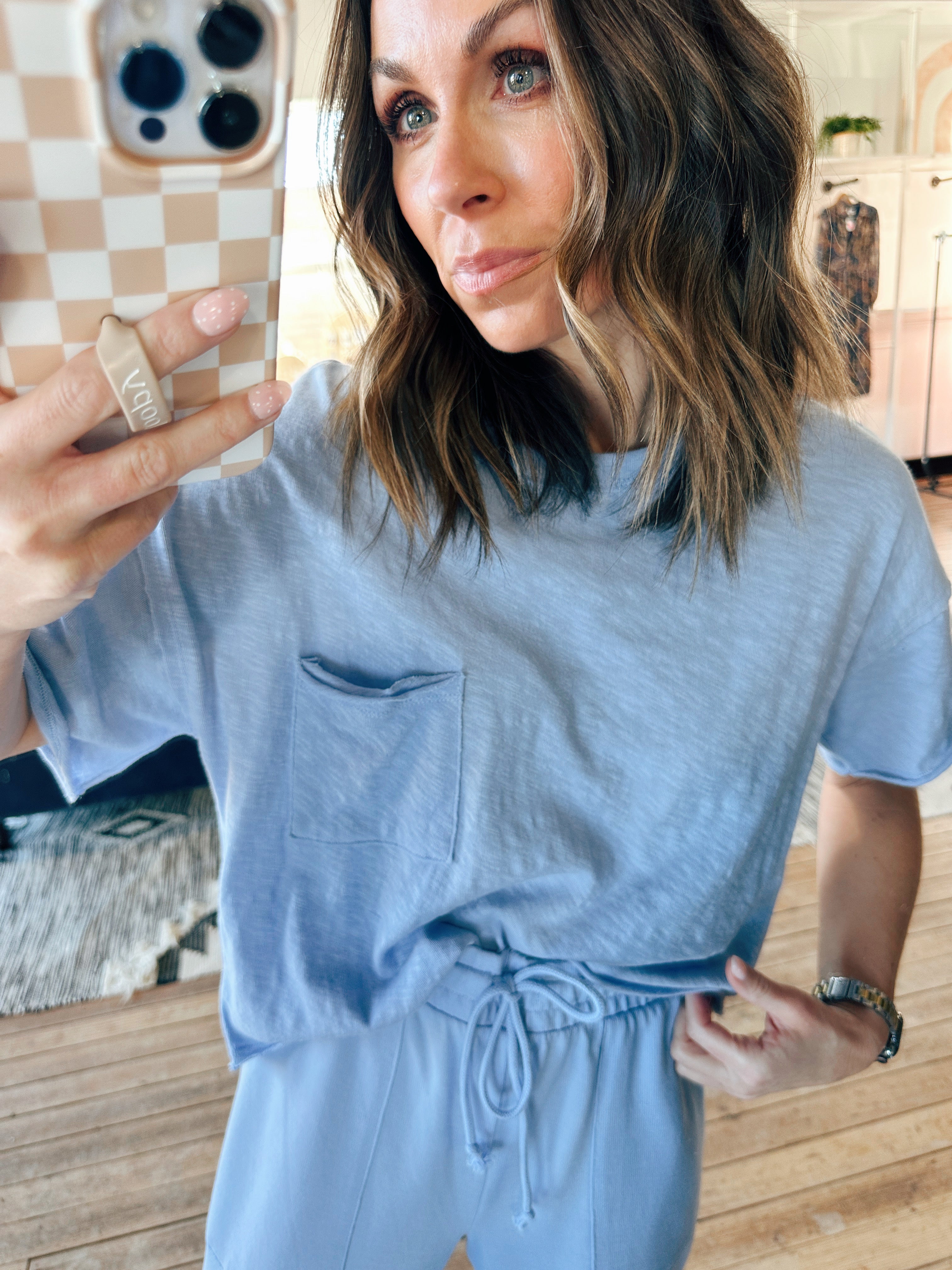 The Z Supply Everyday Pocket Tee is a beautiful premium brushed slub jersey short-sleeve tee featuring a classic crew neckline, a functional chest pocket, and a relaxed, everyday silhouette. It fits relaxed with a soft, flattering drape — perfect for errands, lounging, travel days, or everyday wear. Made from a lightweight, ultra-soft cotton fabric, this piece adds effortless comfort with a polished, lived-in feel.
