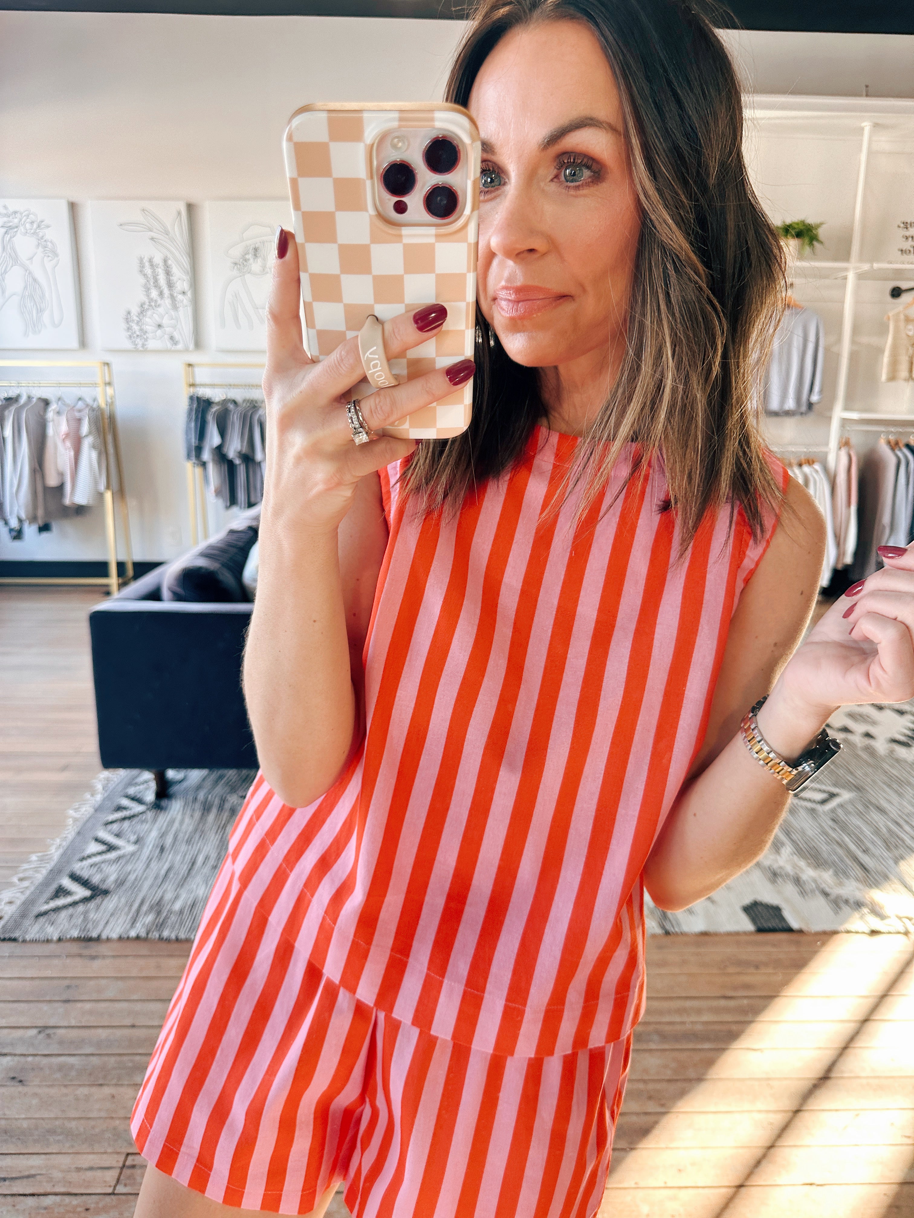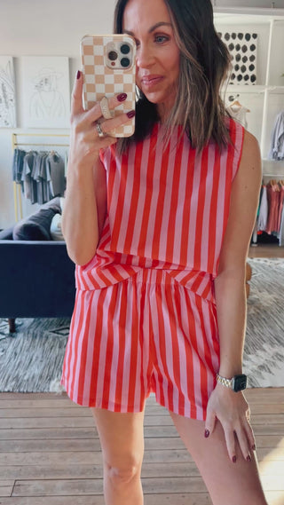 Wishlist – Haven Striped Tank & Shorts Set- Punch/Coral