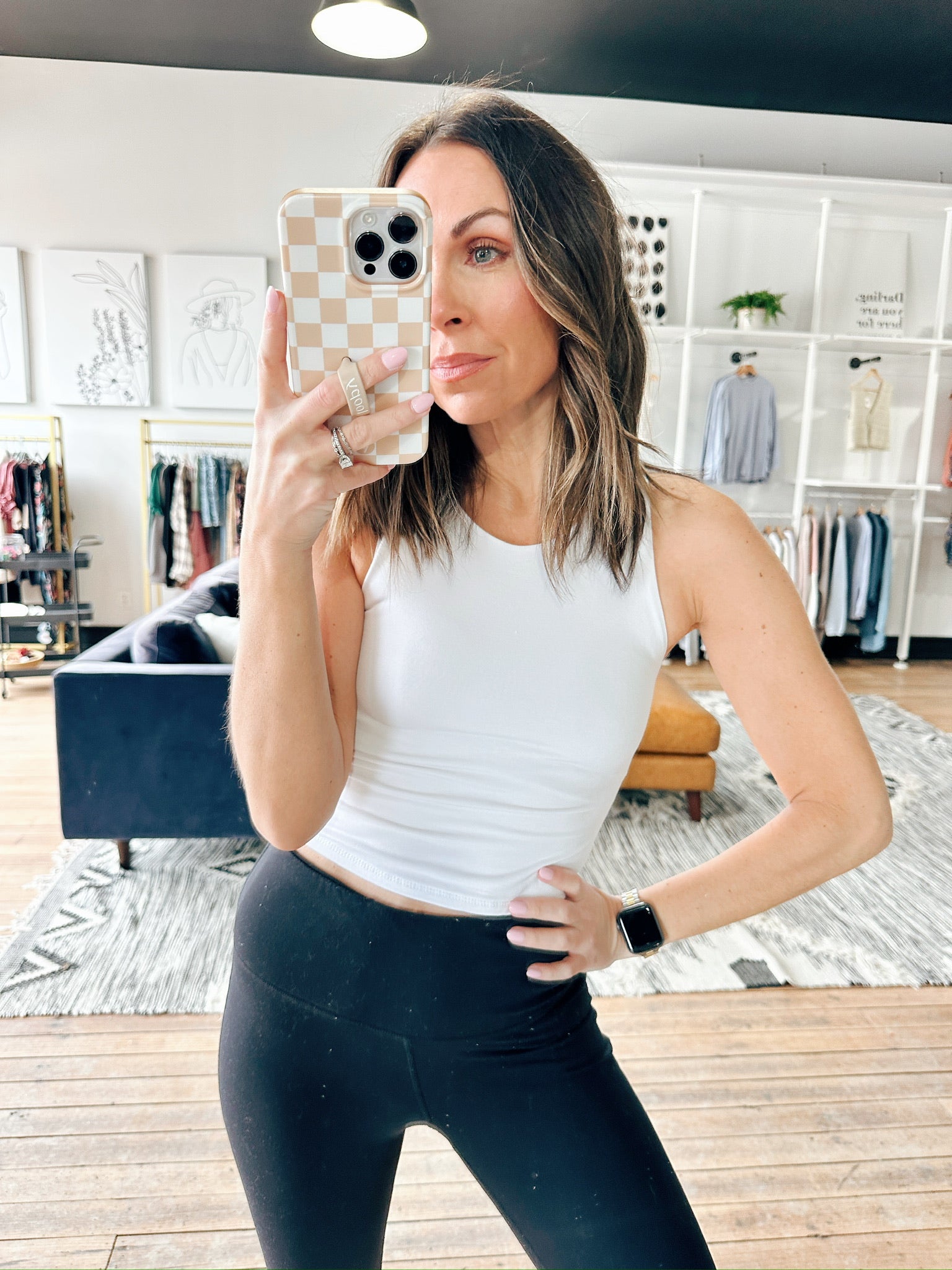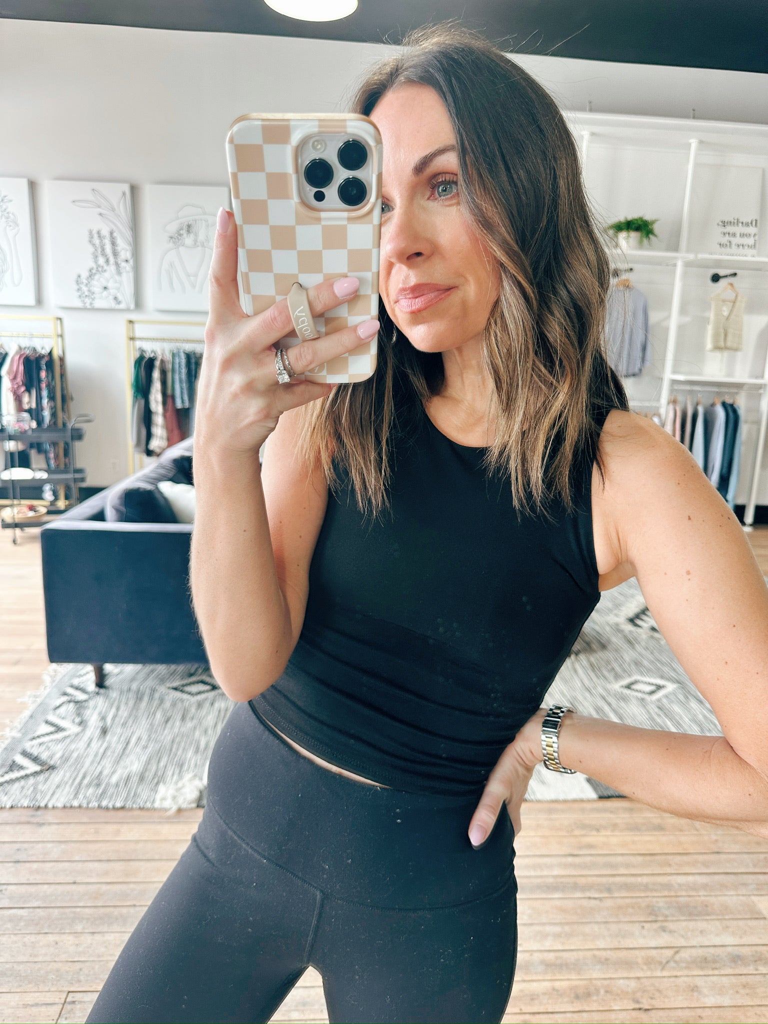 The Jana Tank is a beautiful stretchy tank featuring a high neck in a cropped length.