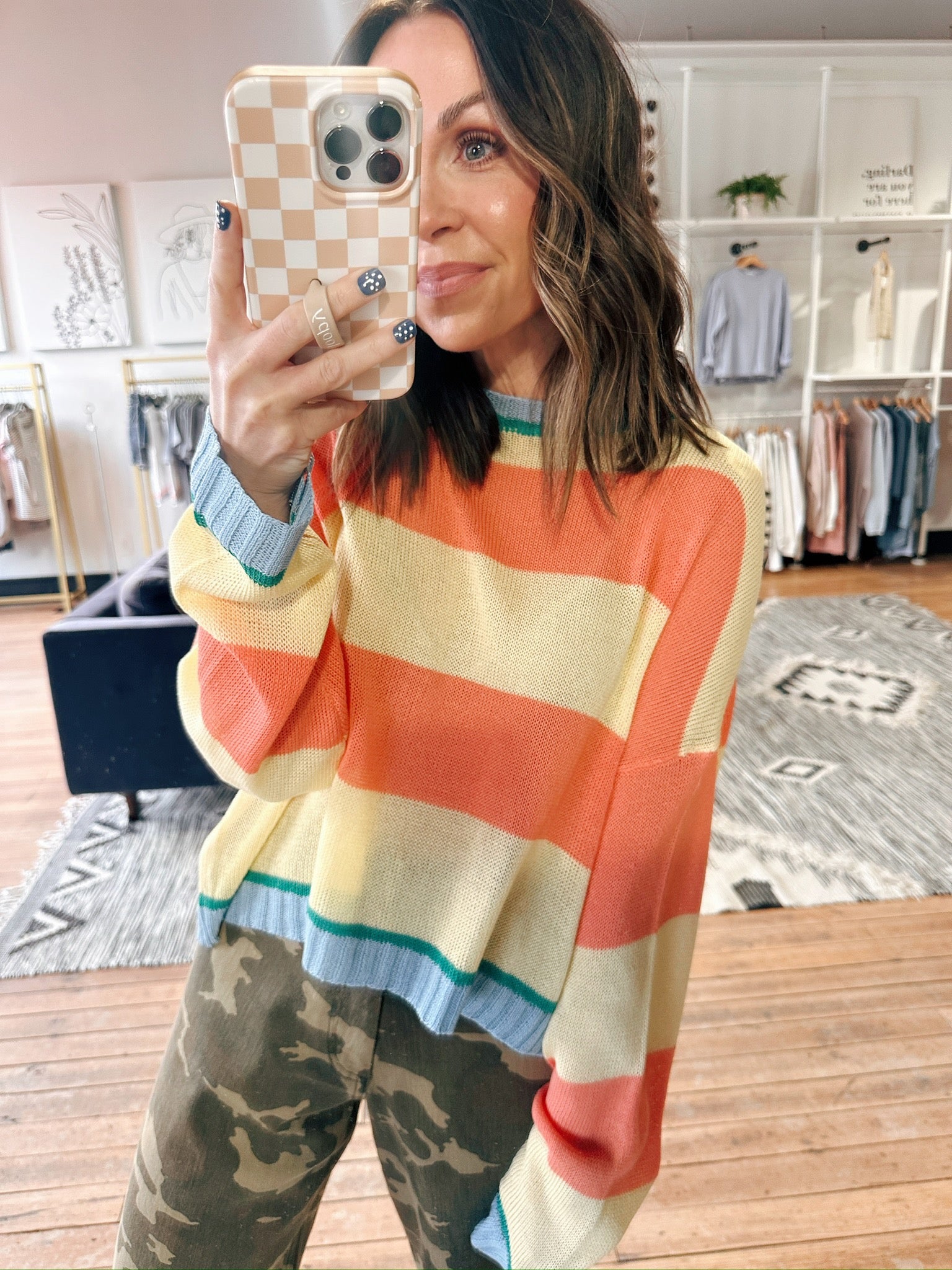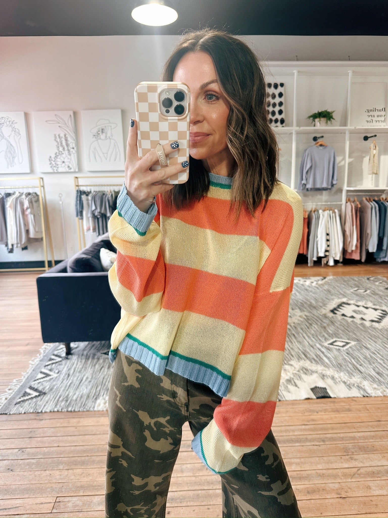 Wishlist – Keira Striped Lightweight Sweater - Sunkist/Daisy