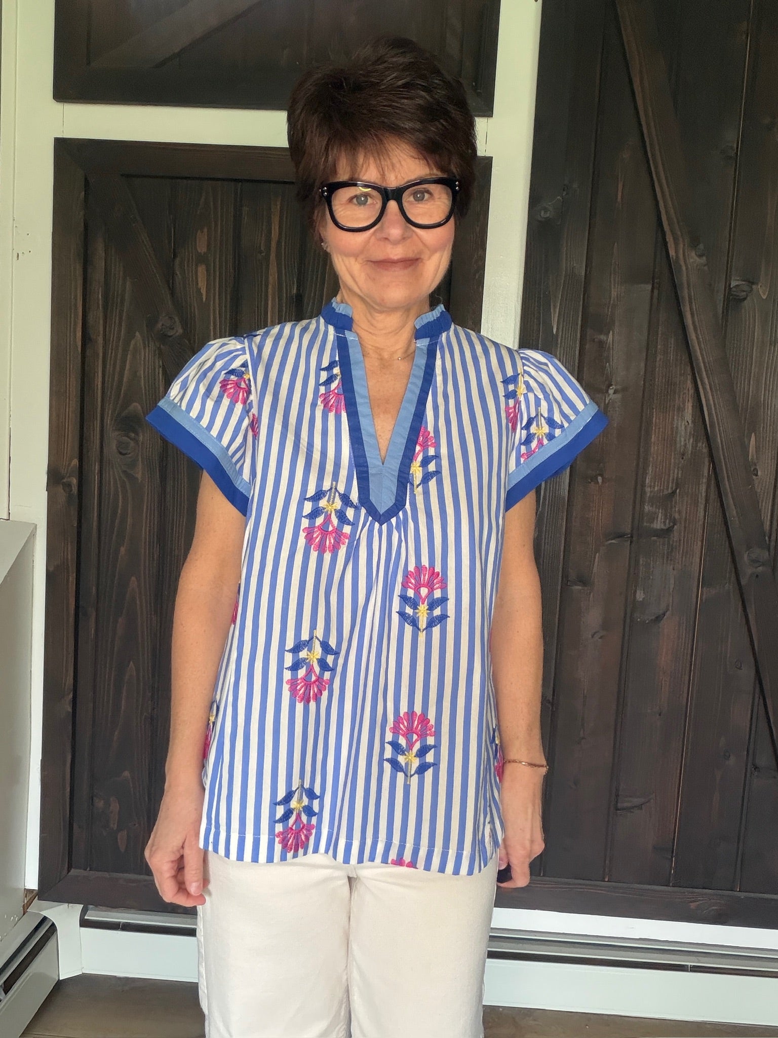 The Umgee Lina Embroidered Striped Top is a beautiful soft cotton woven flutter sleeve top featuring floral embroidery detailing, a split V-neckline, and contrast color block accents. It fits true to size with a relaxed, flattering silhouette — perfect for casual workdays, brunch, church, or everyday wear. Made from a breathable 100% cotton fabric, this piece blends feminine charm with easy, everyday comfort.