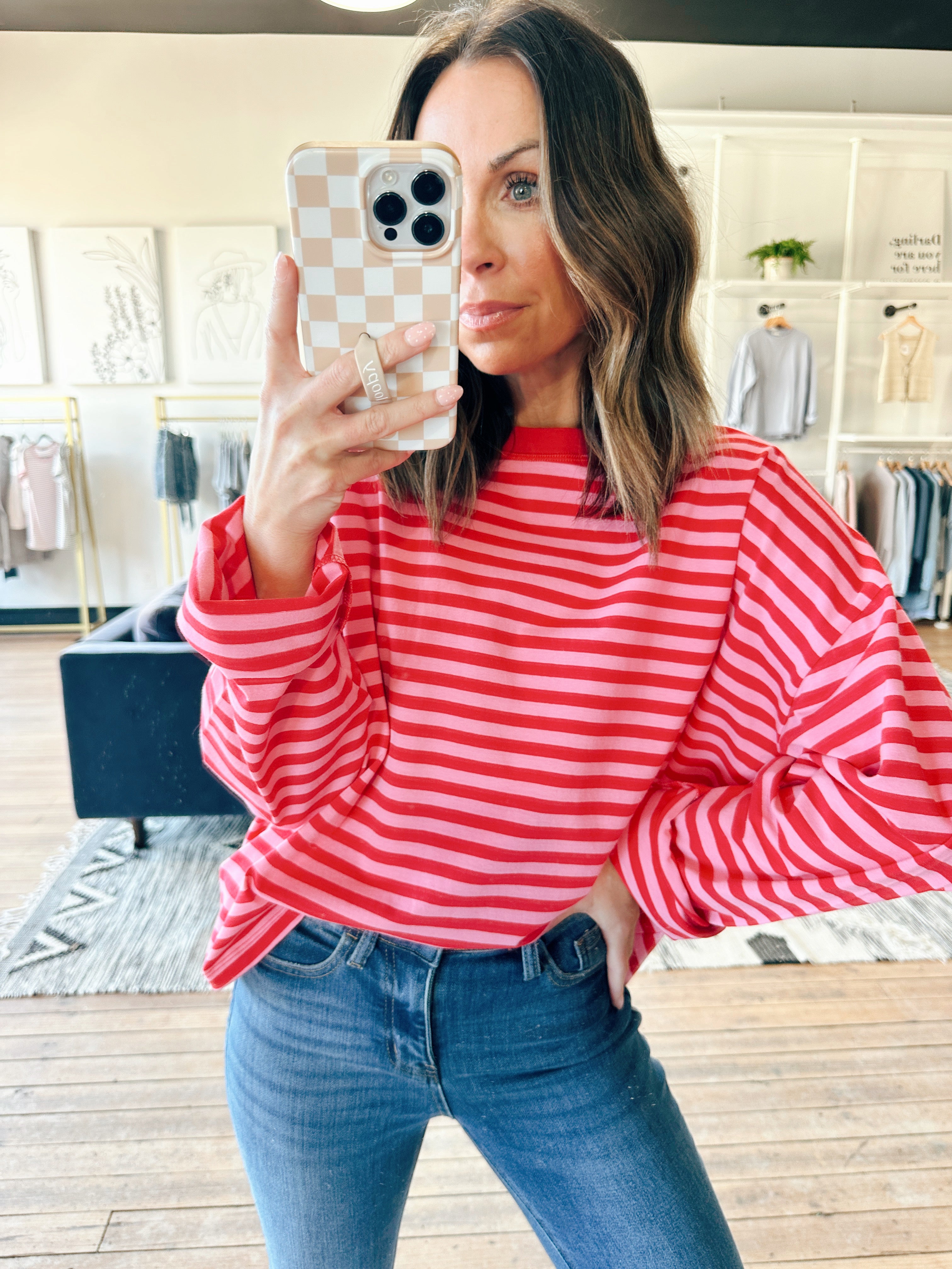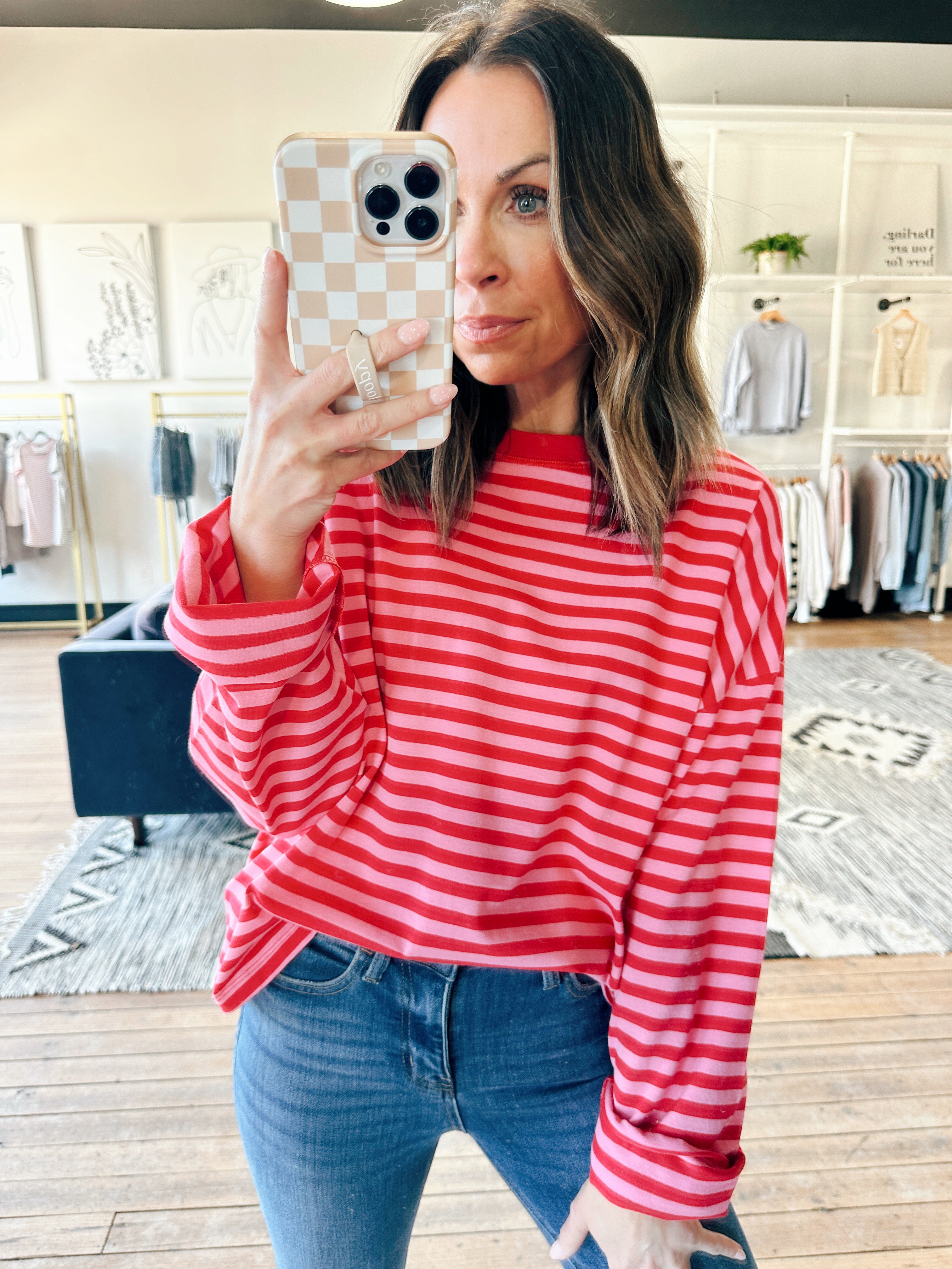 Wishlist – Maris Striped Long Sleeve Top - Hibiscus/Cherry