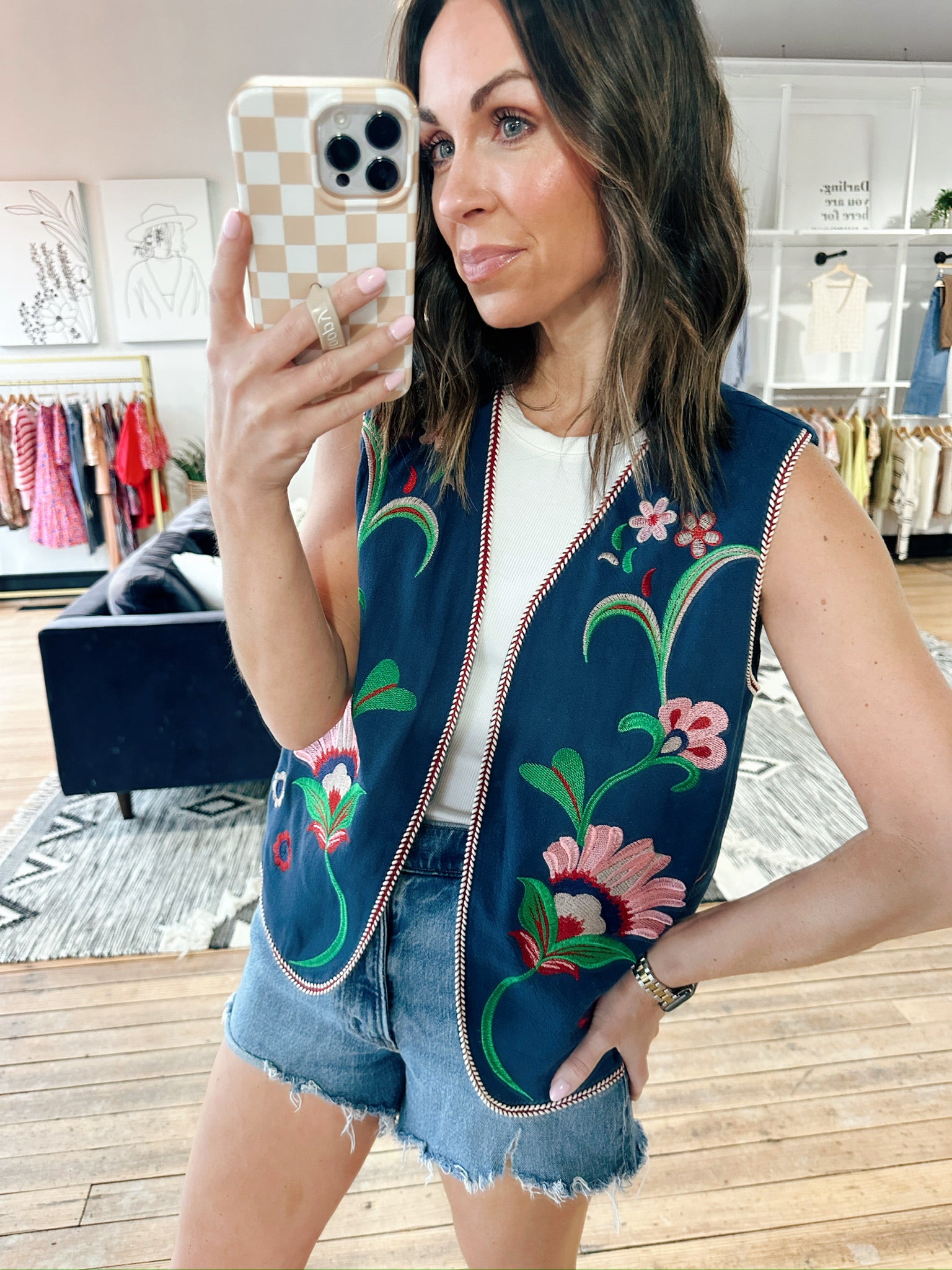VOY – Rayna Floral Embroidery Vest - Navy