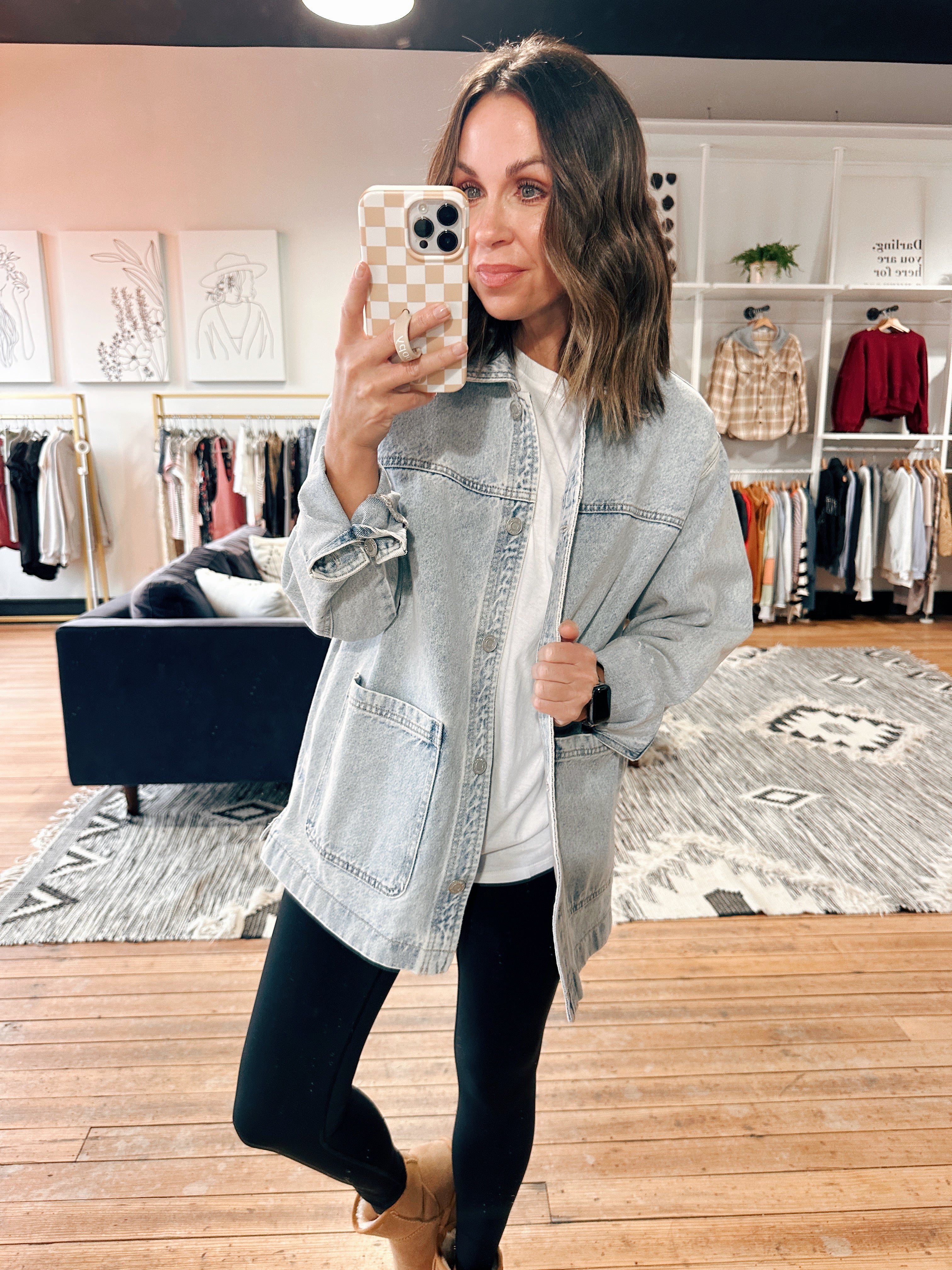 Our favorite brand is back with the cutest and best quality denim jacket! This relaxed style jacket has pockets and a longer length. This fits true to size, and is meant to be a little oversized, perfect for layering with tons of looks this season!