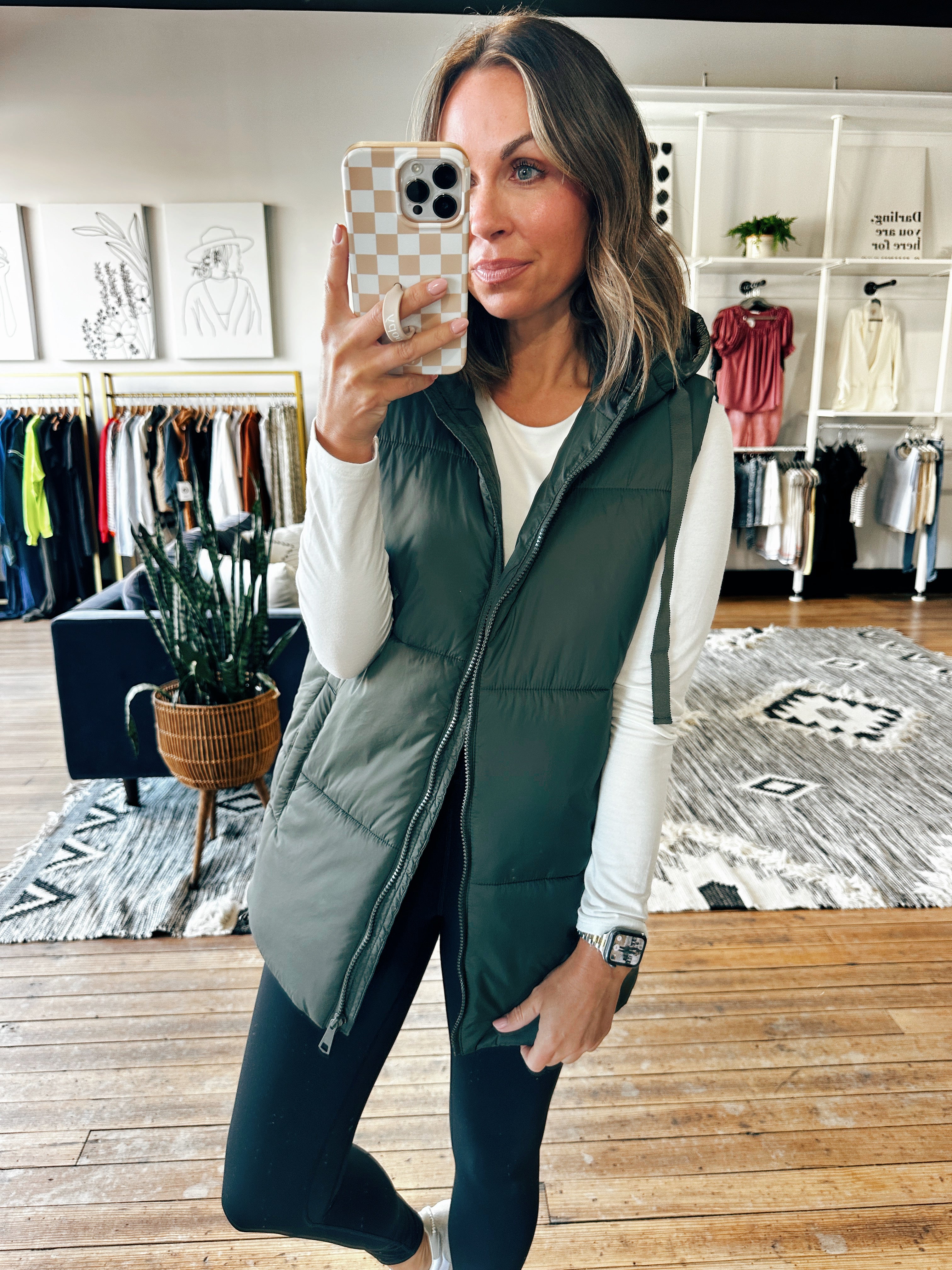 Introducing the Olivia Puffer Vest - available in two fun colors. Keep your booty warm and covered while rocking this trendy puffer vest. Perfect for layering in the colder months. Get yours today!