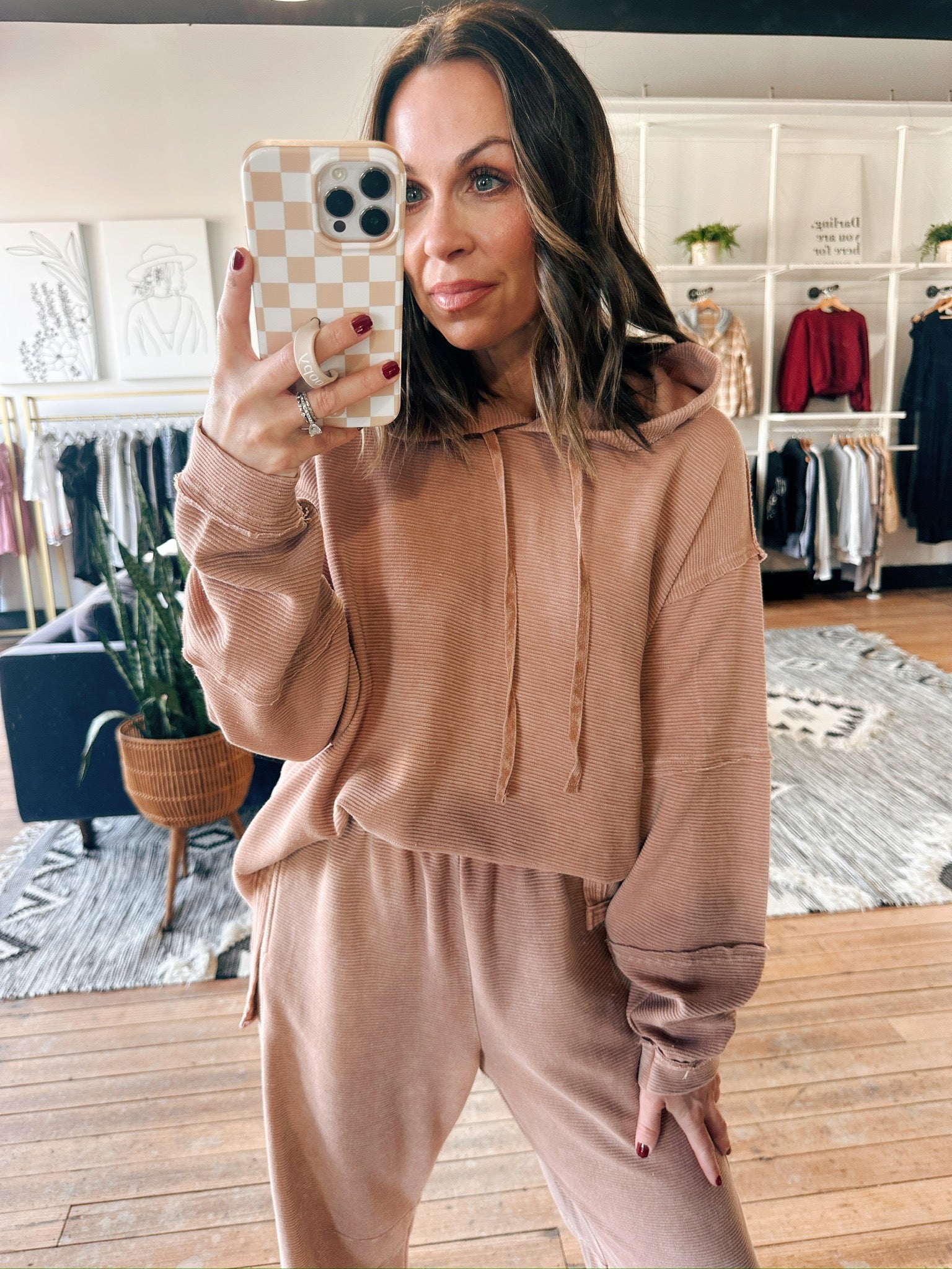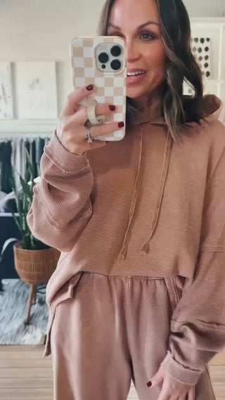 The Ruby Ribbed Knit Pullover delivers effortless comfort with its washed textured rib knit terry fabric. This cozy pullover is designed for relaxed, everyday wear, it combines style and comfort—ideal for lounging, errands, or laid-back weekends.