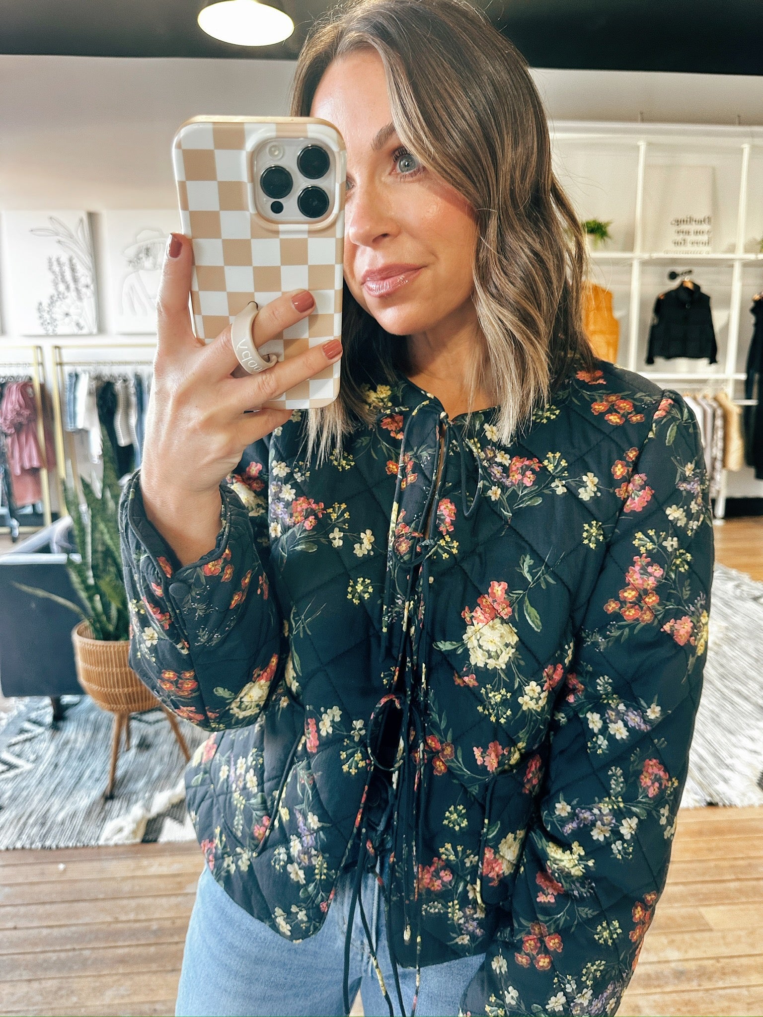 Wendy Black Quilted Floral Jacket -ALL SALES FINAL