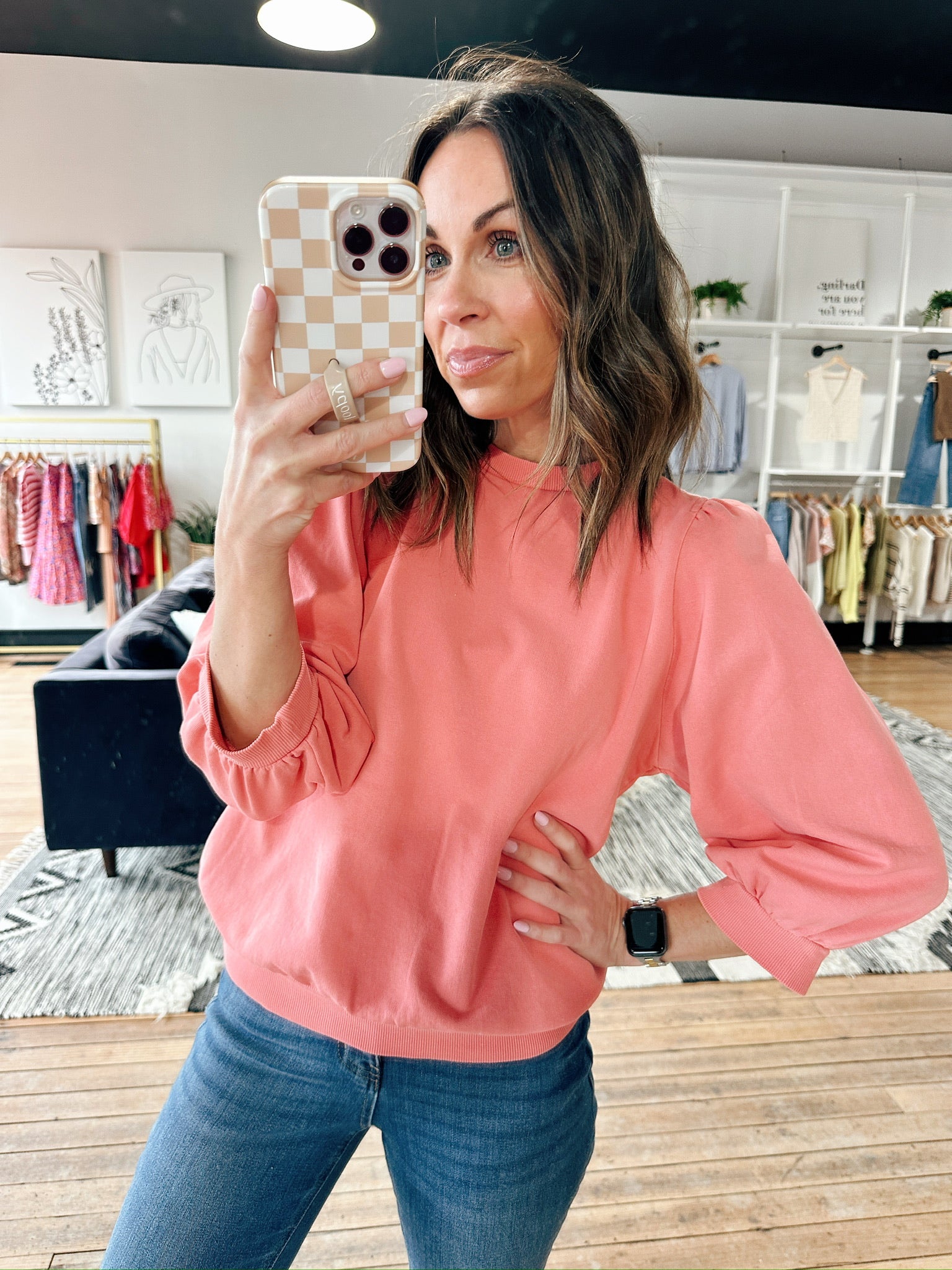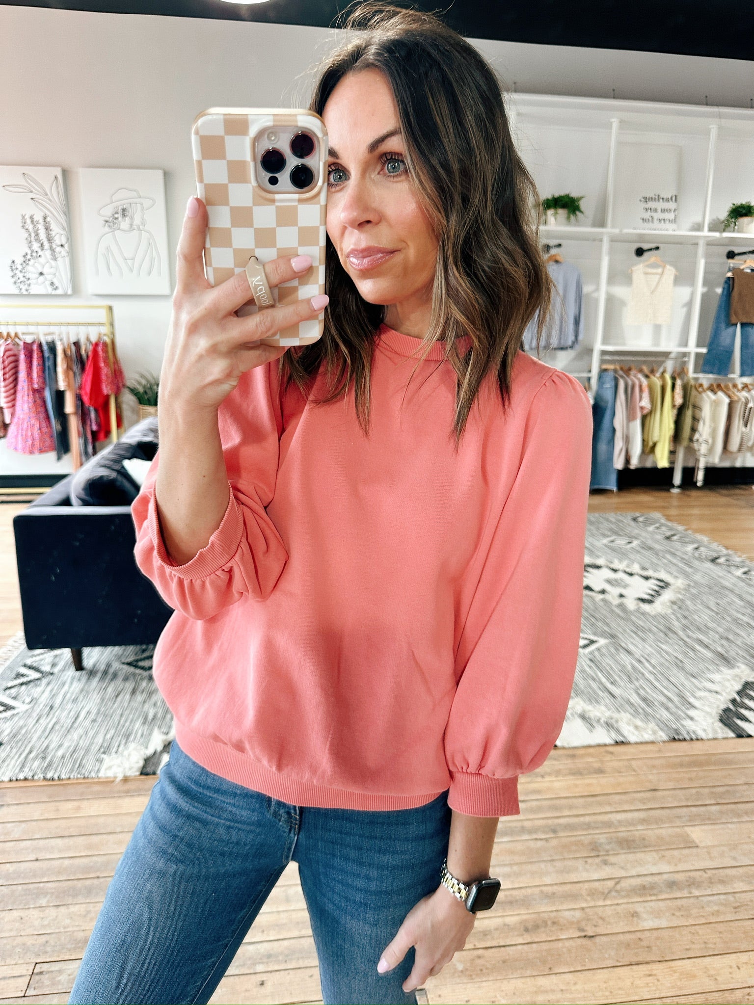 The Be Cool Malia Puff Sleeve Top is a beautiful soft French terry knit pull-over top featuring 3/4 puff sleeves, volume sleeve detail, and a garment-washed finish for an ultra-soft touch. It fits true to size with a relaxed, flattering silhouette — perfect for casual workdays, errands, brunch, or everyday wear. Made from a midweight cotton-blend fabric, this piece adds effortless texture and feminine structure while staying comfortable.