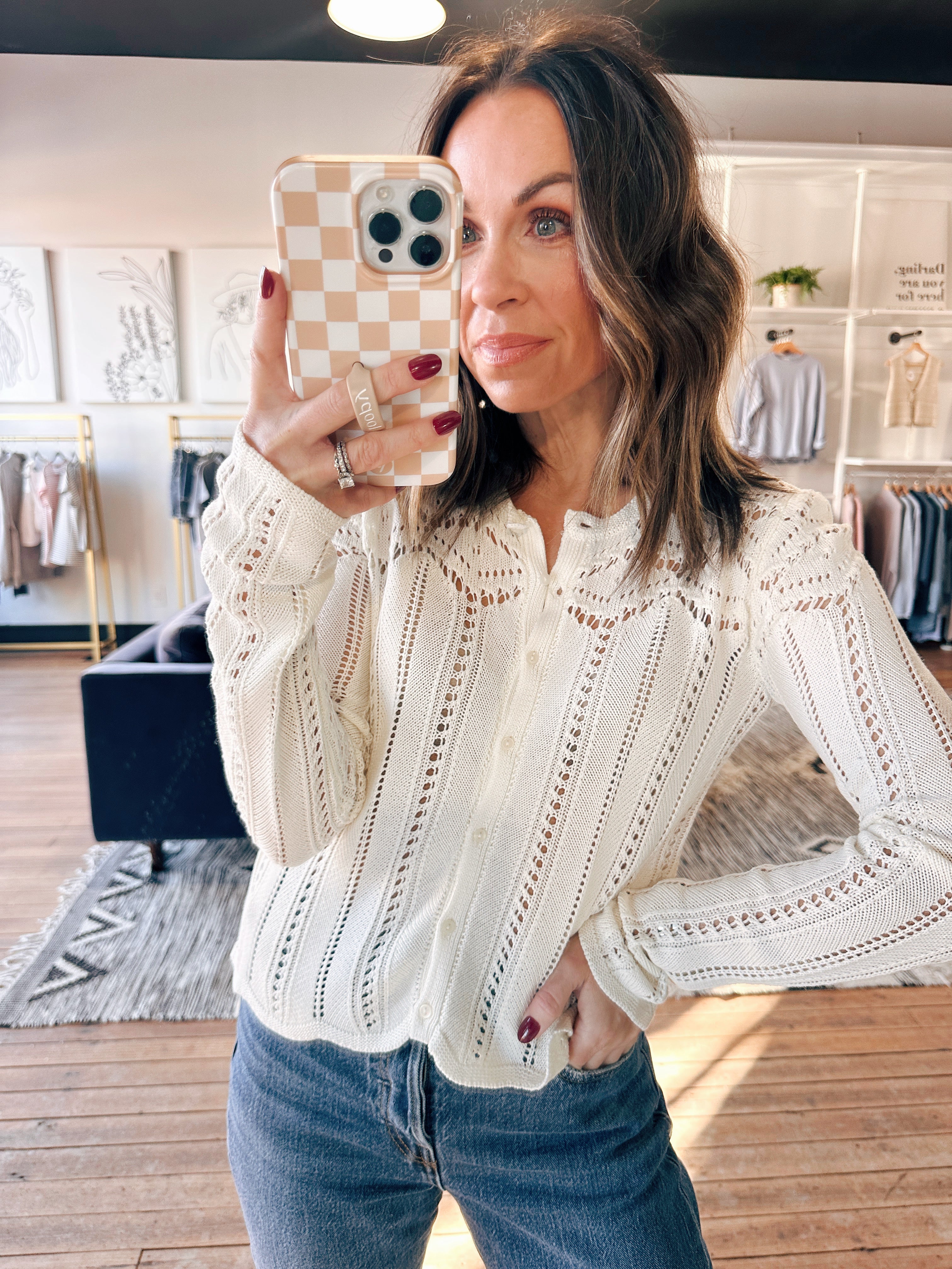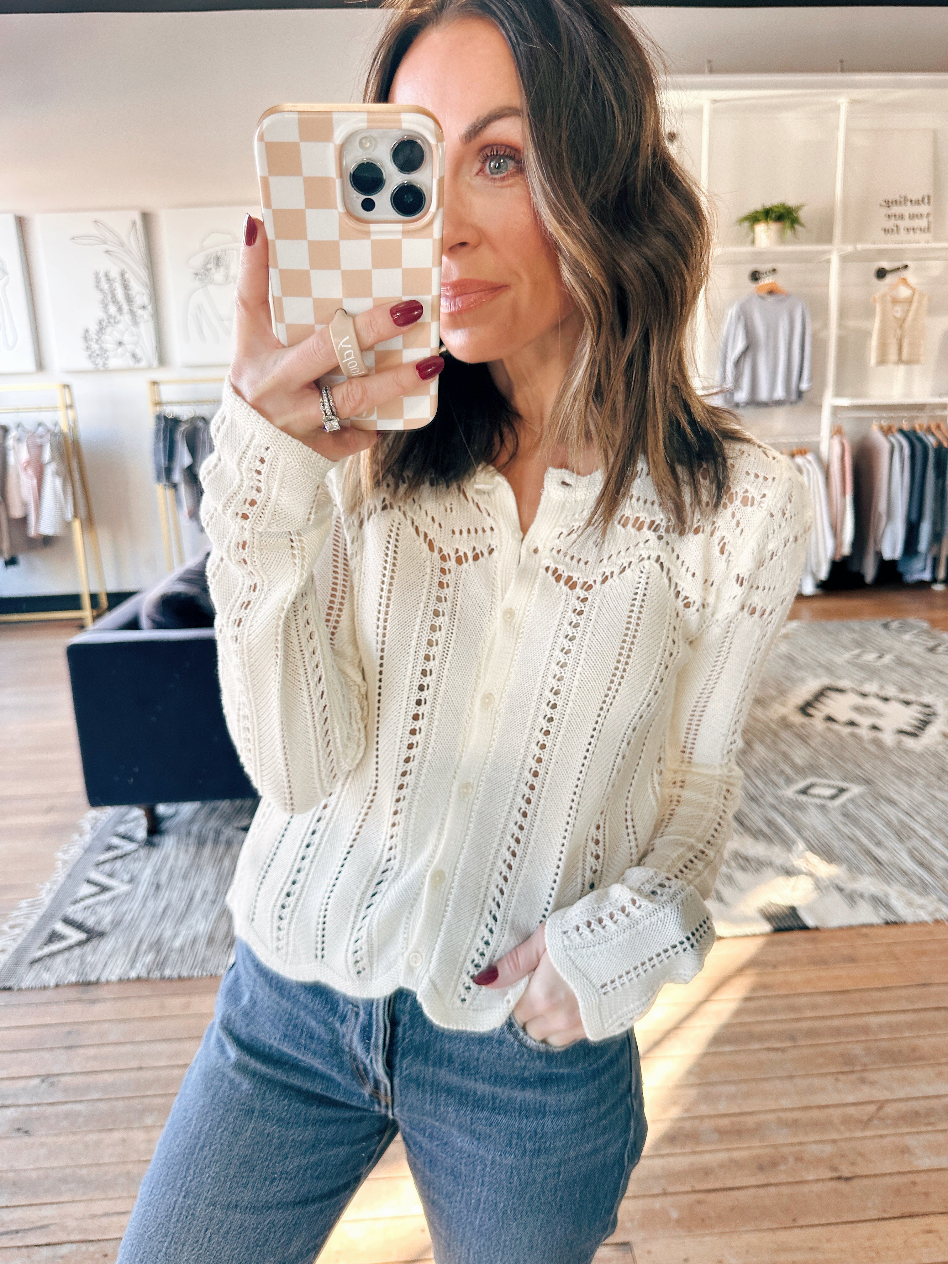 The Z Supply Alycia Crochet Sweater is a beautiful lightweight slub crochet knit long-sleeve sweater featuring an airy open-weave texture, a classic crew neckline, and an easy, relaxed silhouette. It fits true to size with a soft, effortless drape — perfect for layering, breezy days, travel, or everyday wear. Made from a lightweight viscose yarn, this piece adds breathable texture and an elevated laid-back feel.