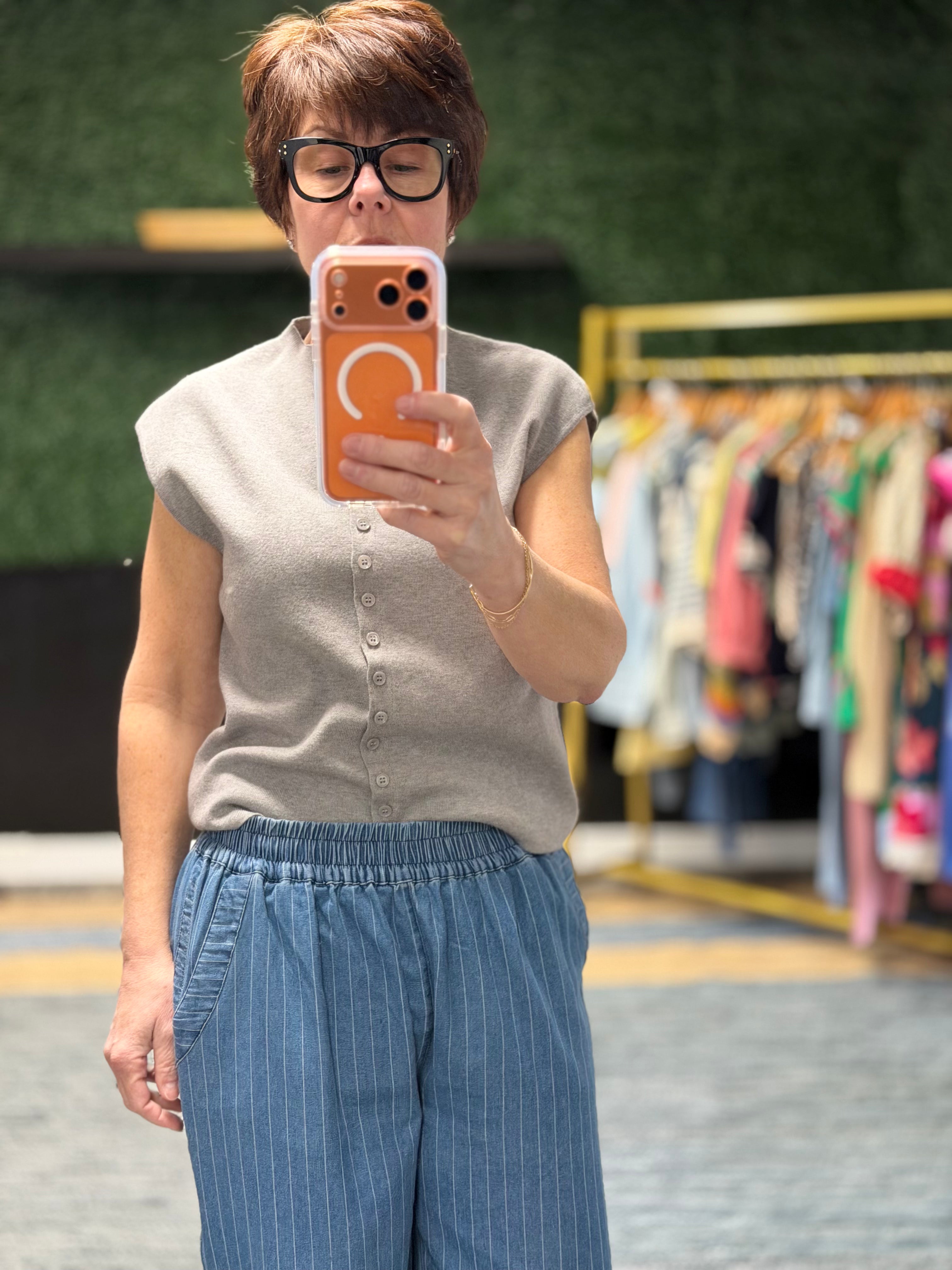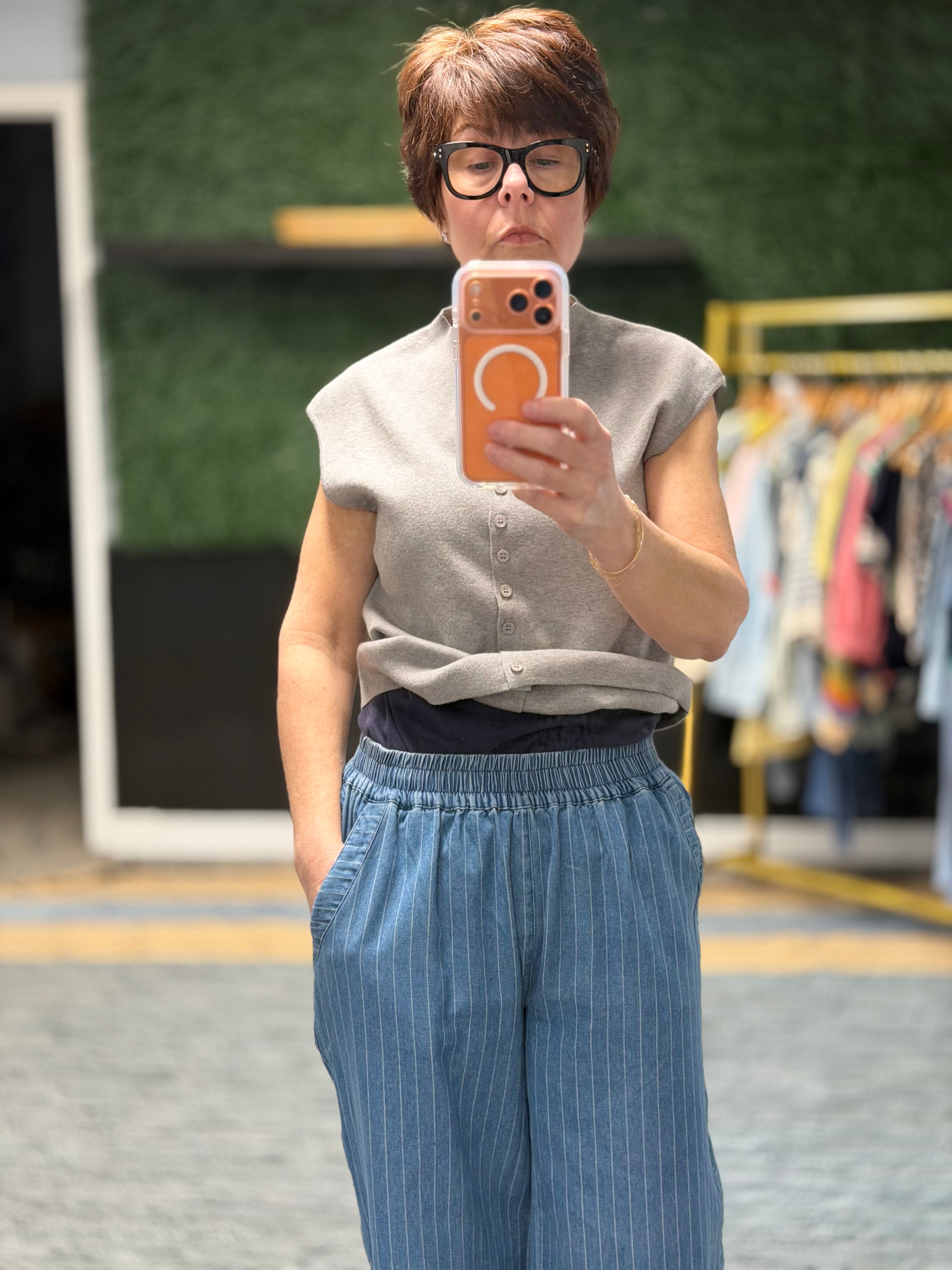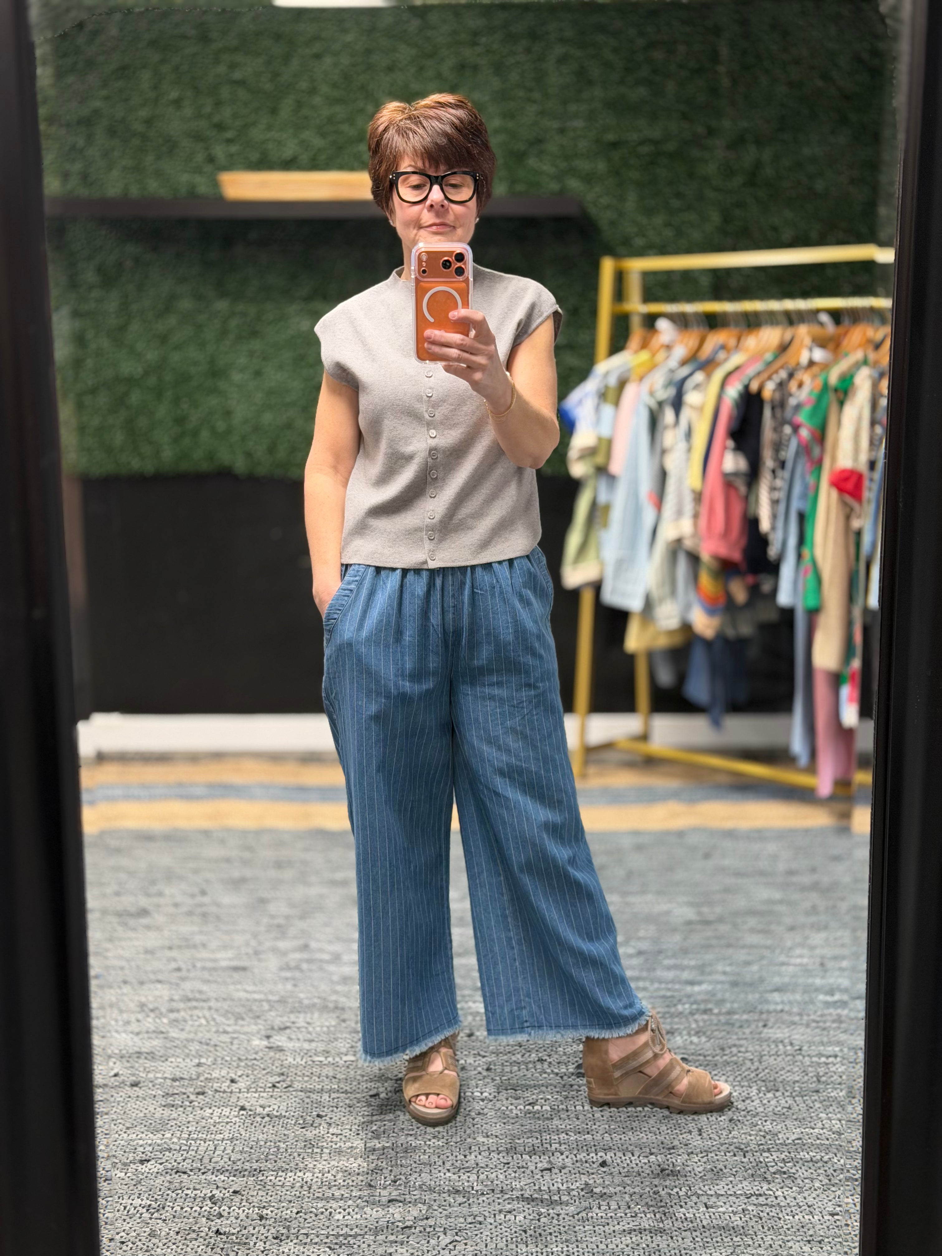 Umgee – Danae Pinstripe Wide Leg Pants - Lt Denim